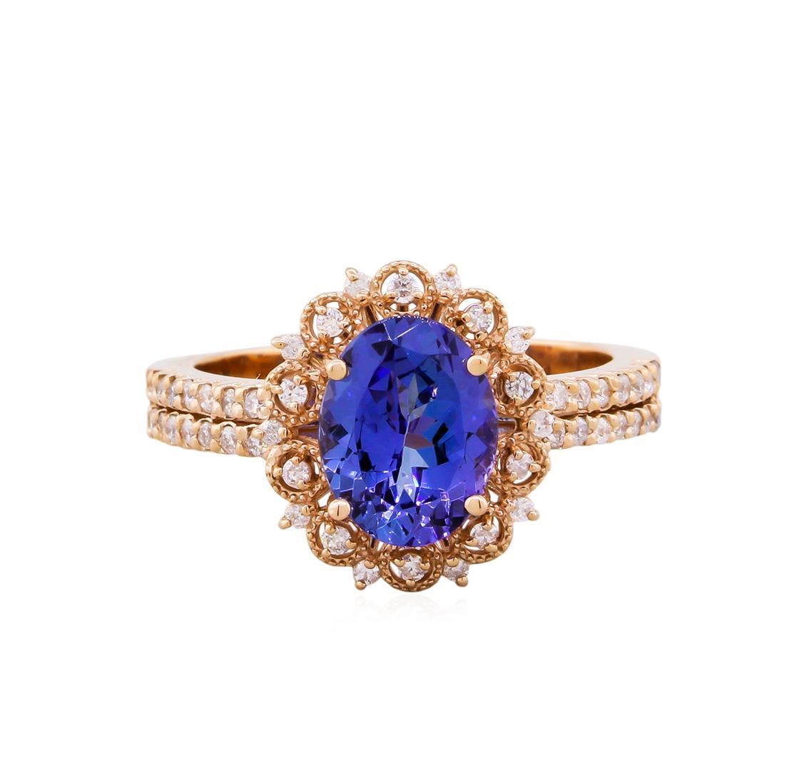 One ring featuring: 14KT rose gold weighing 4.27 grams containing one tanzanite with a total weight of 2.01ct and diamonds with a total weight of 0.31ct.
