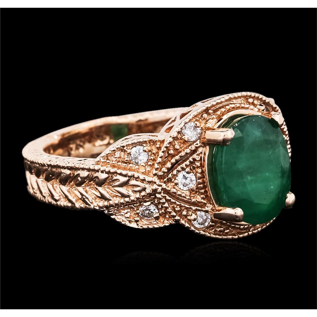 One ring featuring: 14KT rose gold weighing 7.49 grams containing one emerald center stone with a total weight of 2.08ct and round diamonds with a total weight of 0.16cts.