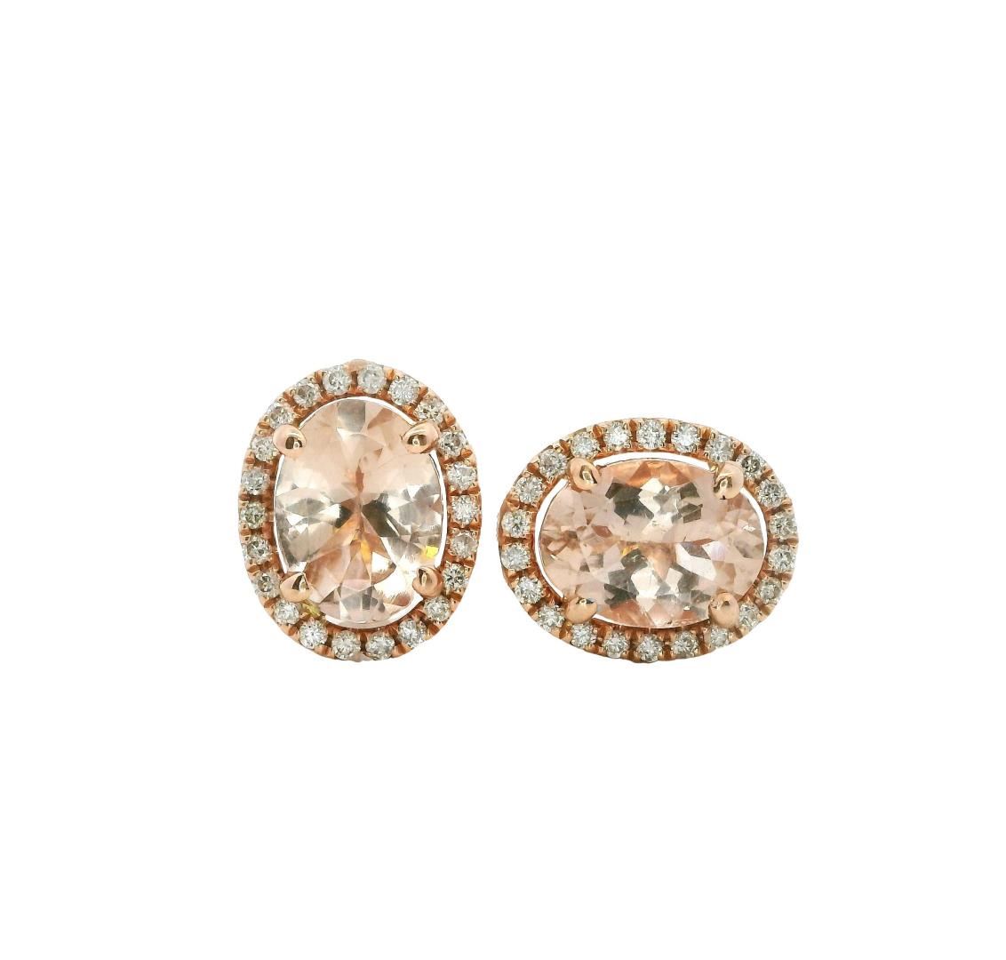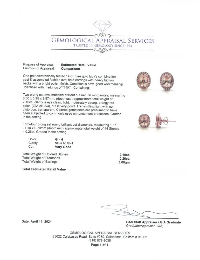 One pair electronically tested 14KT rose gold lady's combination cast & assembled fashion oval halo earrings with heavy friction backs with a bright polish finish. Condition is new, good workmanship. Identified with markings of "14K". Containing: Two pron GAS Appraised.