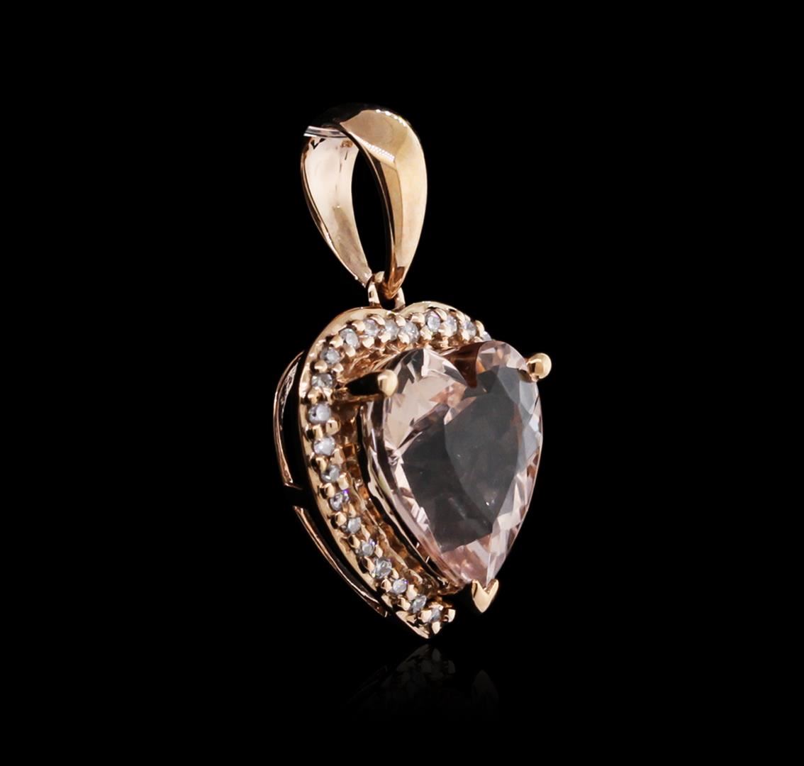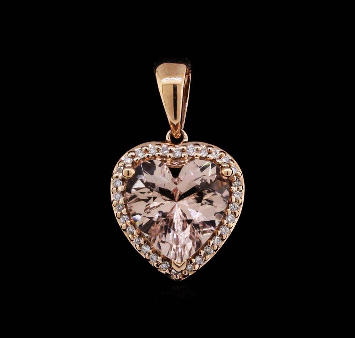 One pendant featuring: 14KT rose gold weighing 1.26 grams containing one morganite with a total weight of 2.71ct and 30 round diamonds with a total weight of 0.11ct.