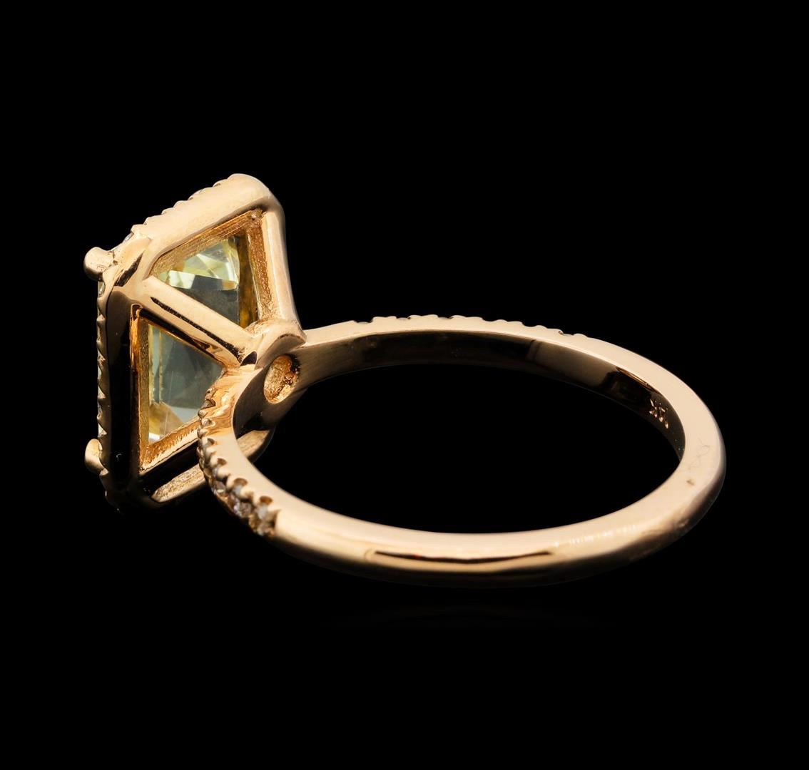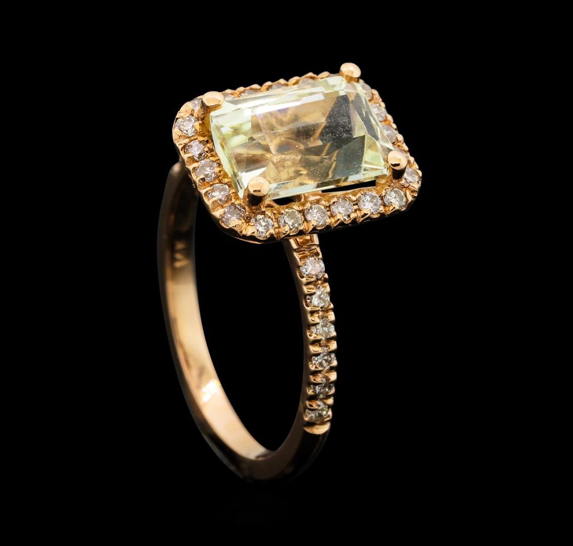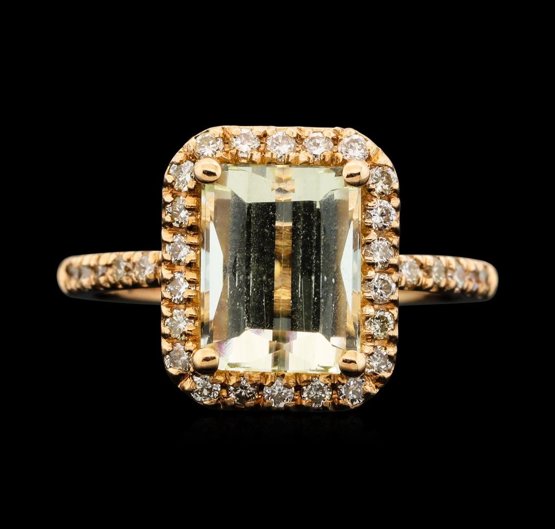 One lady's ring featuring: 14KT rose gold weighing 3.7 grams containing one center citrine weighing 3.05ct and thirty-two diamonds weighing 0.37ctw.
