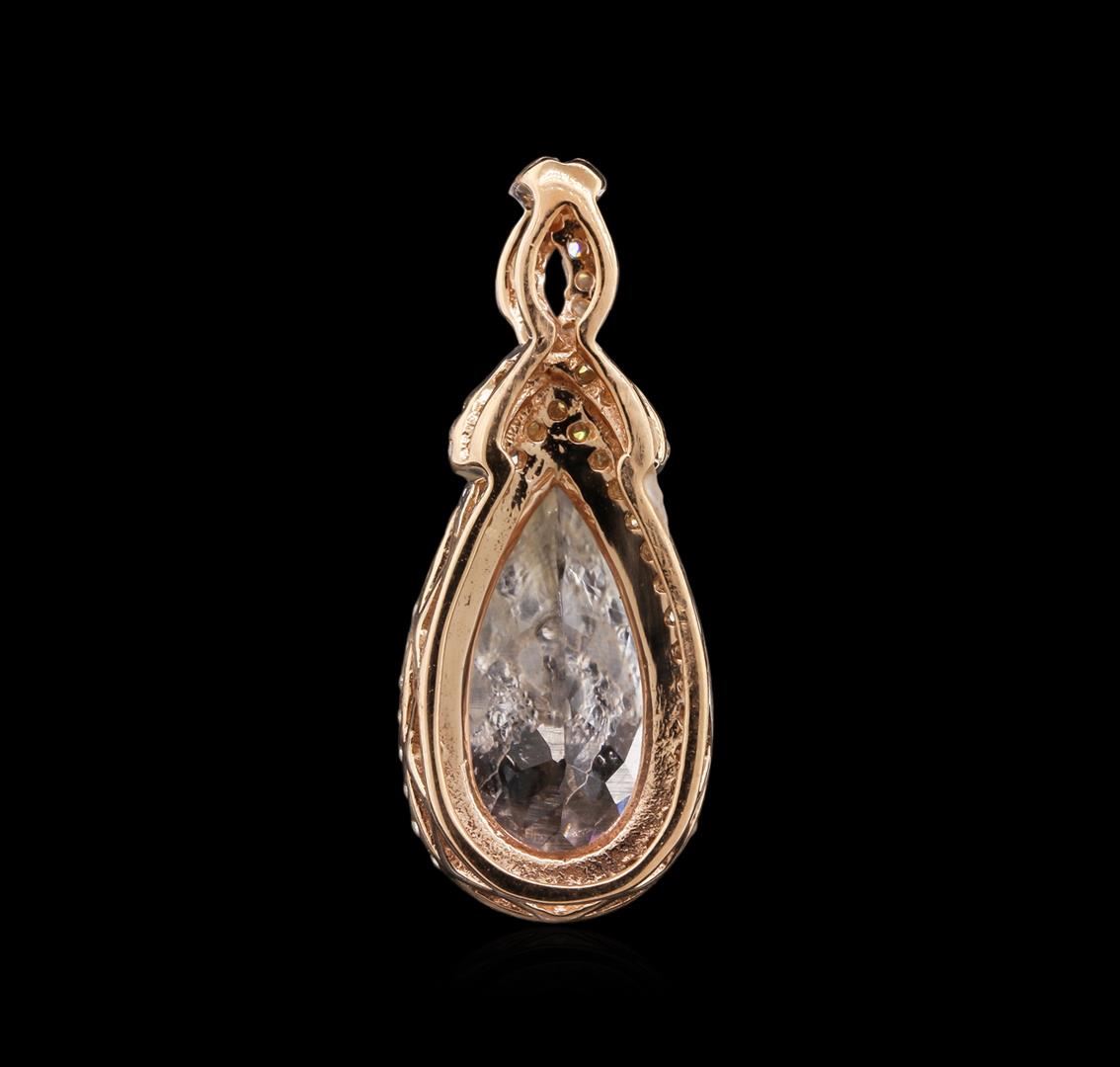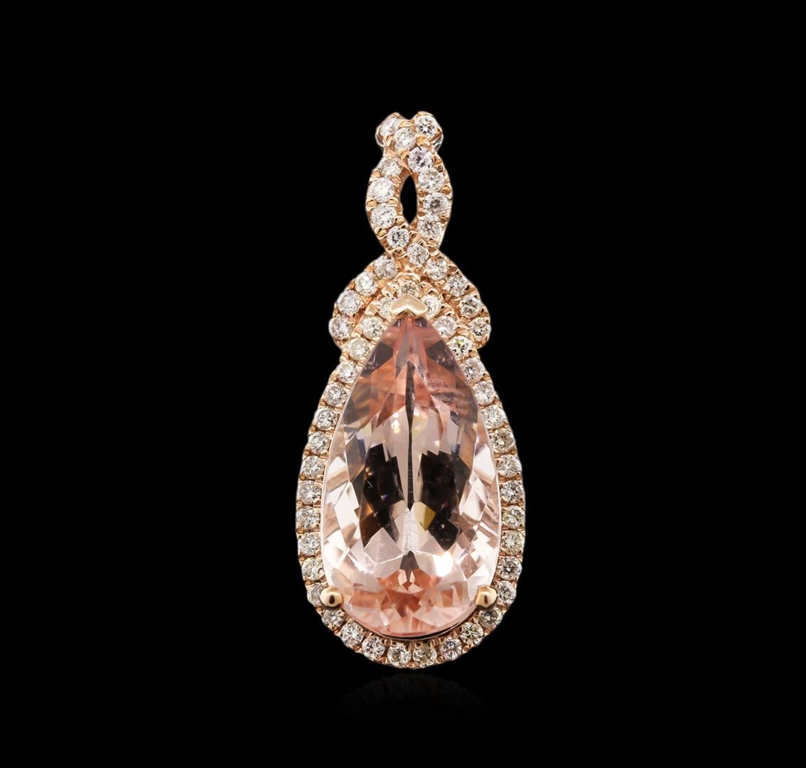 One pendant featuring: 14KT rose gold weighing 2.03 grams containing one morganite center stone with a total weight of 3.40ct and 55 round diamonds with a total weight of 0.32ct.