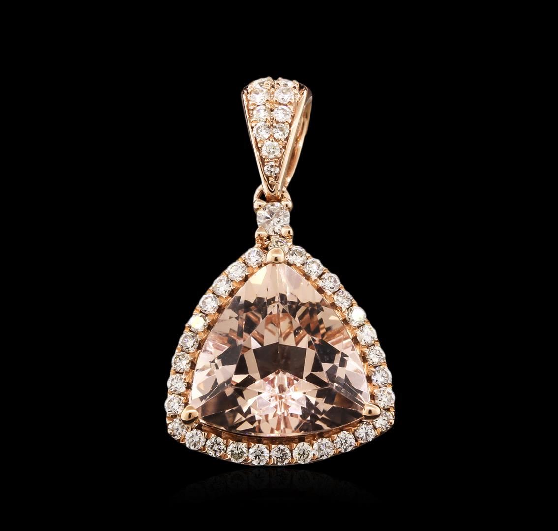One pendant featuring: 14KT rose gold weighing 2.02 grams containing one morganite center stone with a total weight of 3.51ct and 41 round diamonds with a total weight of 0.38ct.