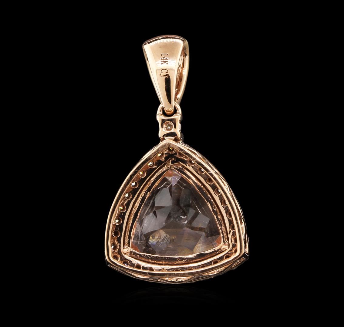 One pendant featuring: 14KT rose gold weighing 2.02 grams containing one morganite center stone with a total weight of 3.51ct and 41 round diamonds with a total weight of 0.38ct.