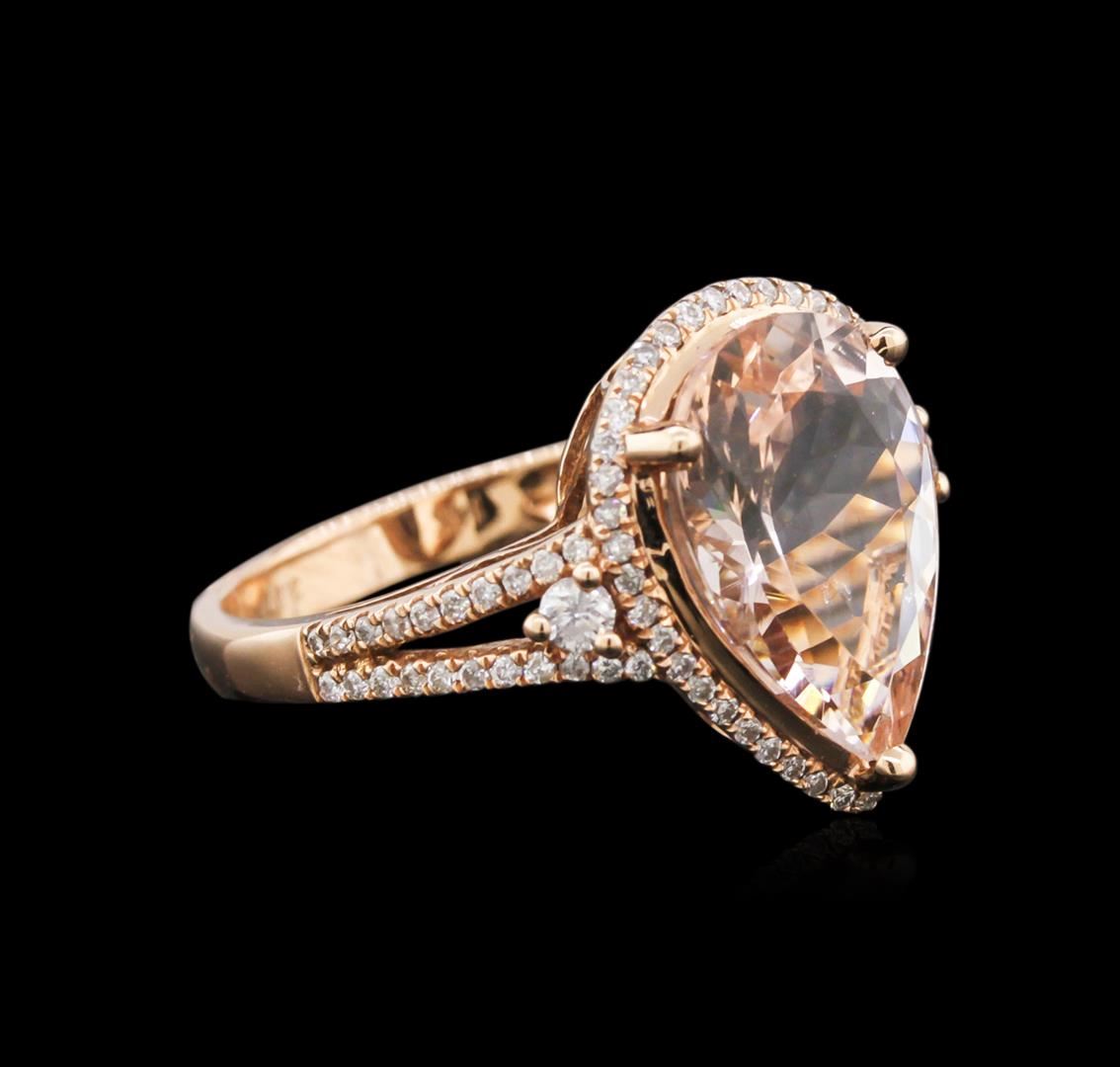 One ring featuring: 14KT rose gold weighing 2.90 grams containing one morganite center stone with a total weight of 3.97ct and 86 round diamonds with a total weight of 0.43ct.