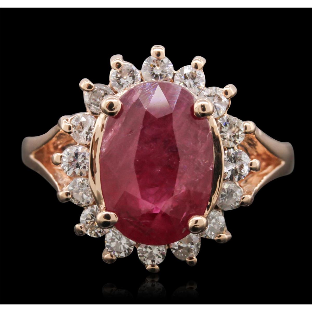 One ring featuring: 14KT Rose Gold with a total weight of 6.70 grams, Ruby with a total weight of 4.59ct, and Diamonds with a total weight of 0.64ctw.