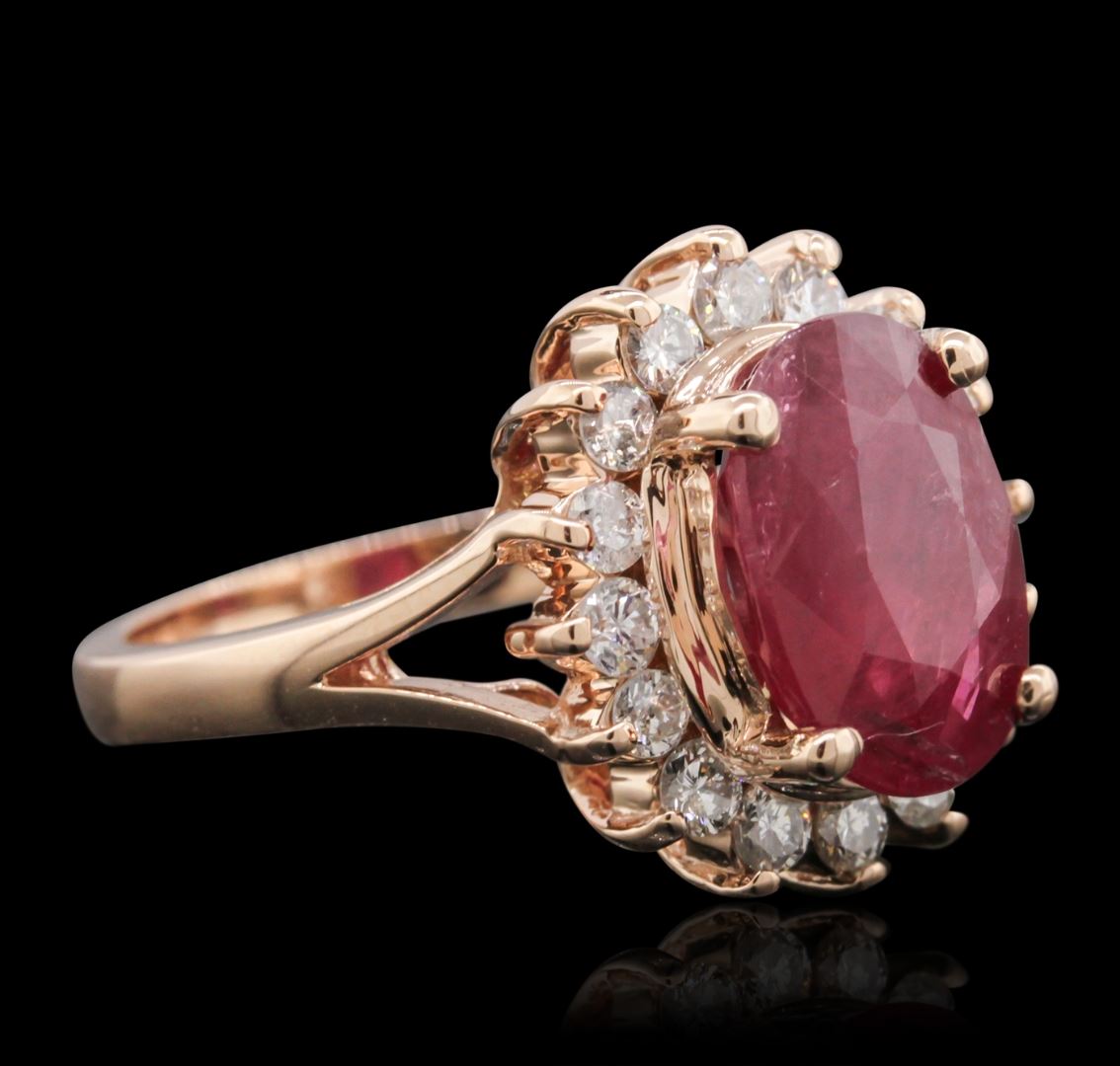 One ring featuring: 14KT Rose Gold with a total weight of 6.70 grams, Ruby with a total weight of 4.59ct, and Diamonds with a total weight of 0.64ctw.