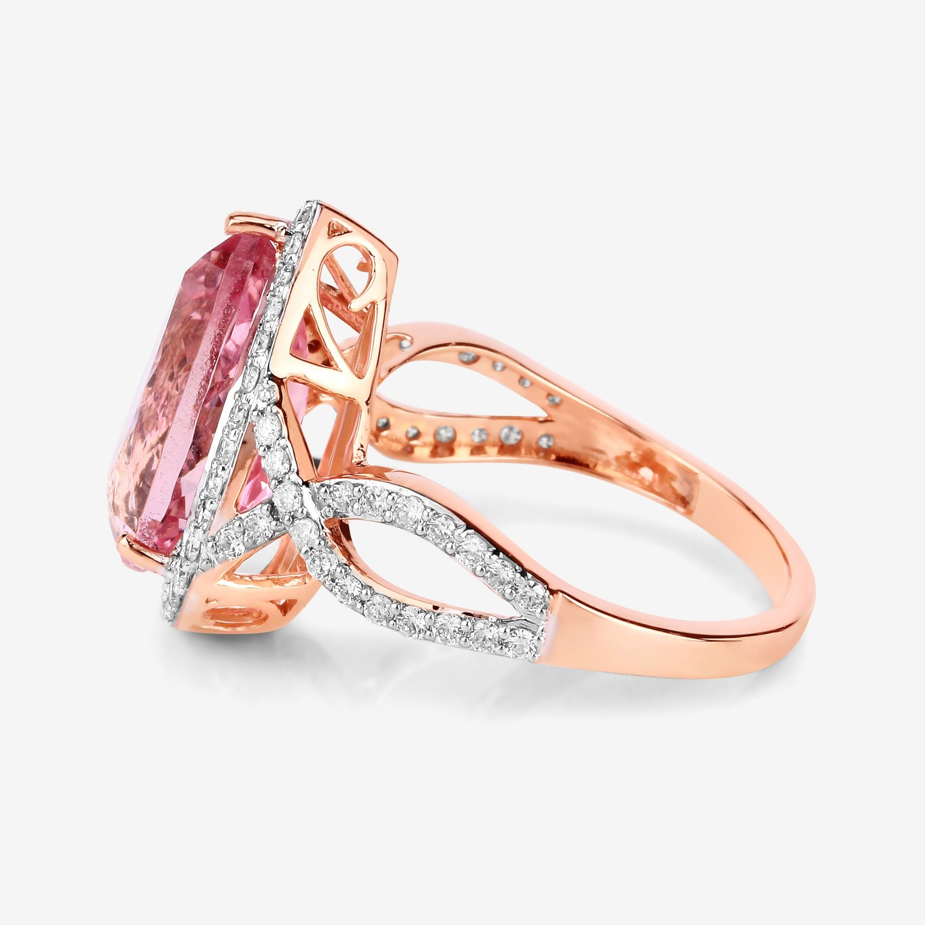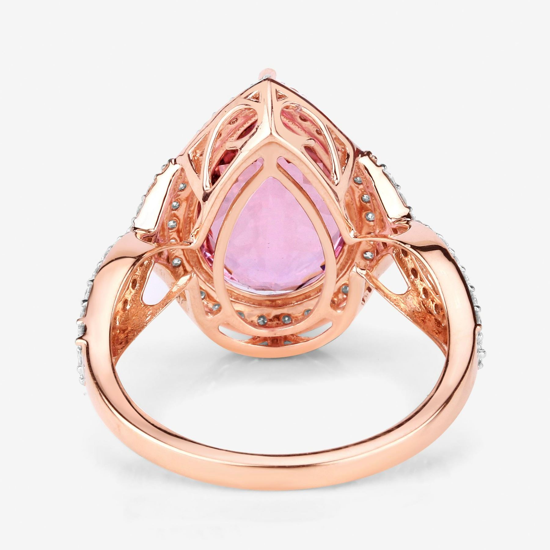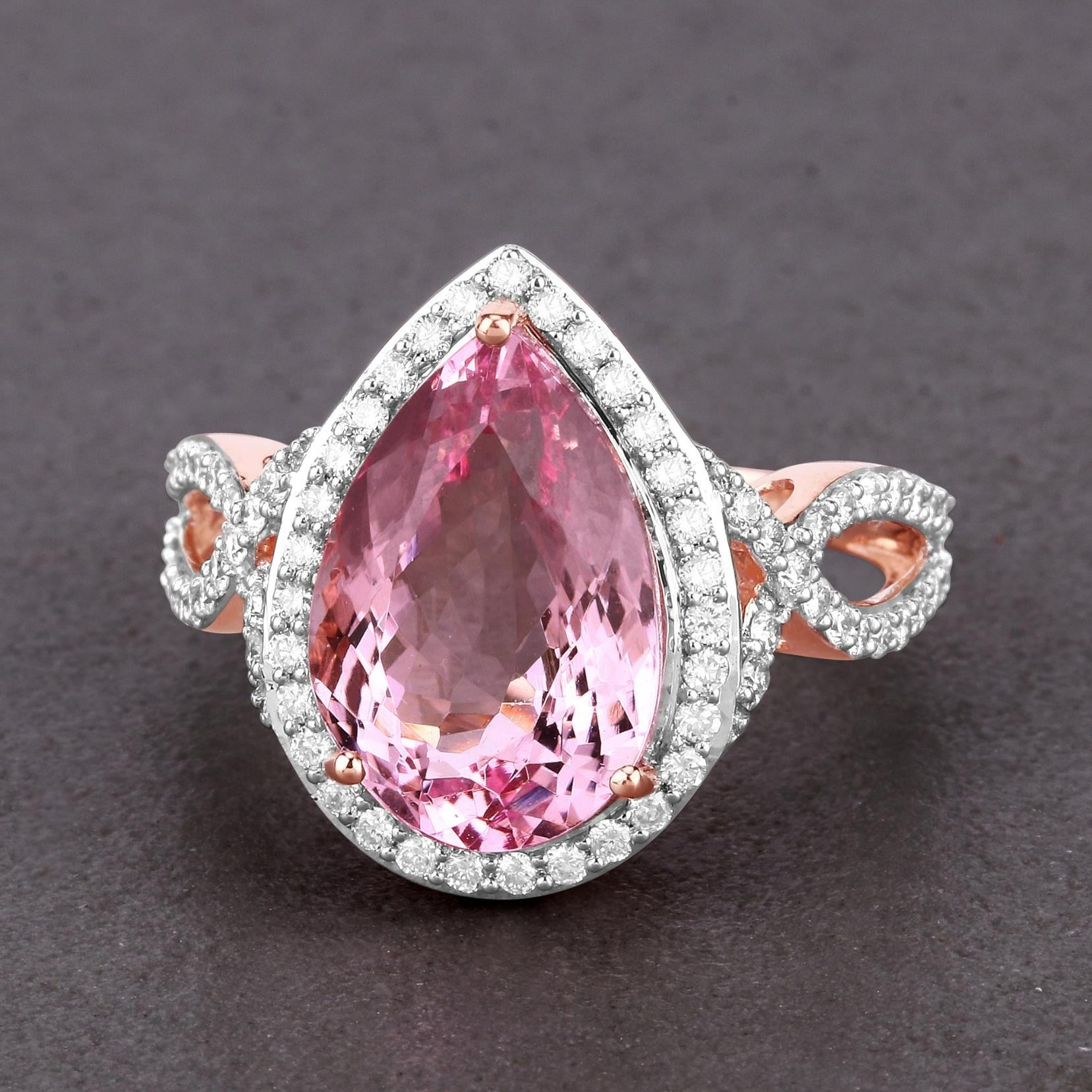 Morganite Pear 14x9mm - 1Pc with a total weight of 4.77cts. Diamond White Round 1.20mm - 71Pcs ( SI-2/H-I ) with a total weight of 0.57cts. Ring size 7.