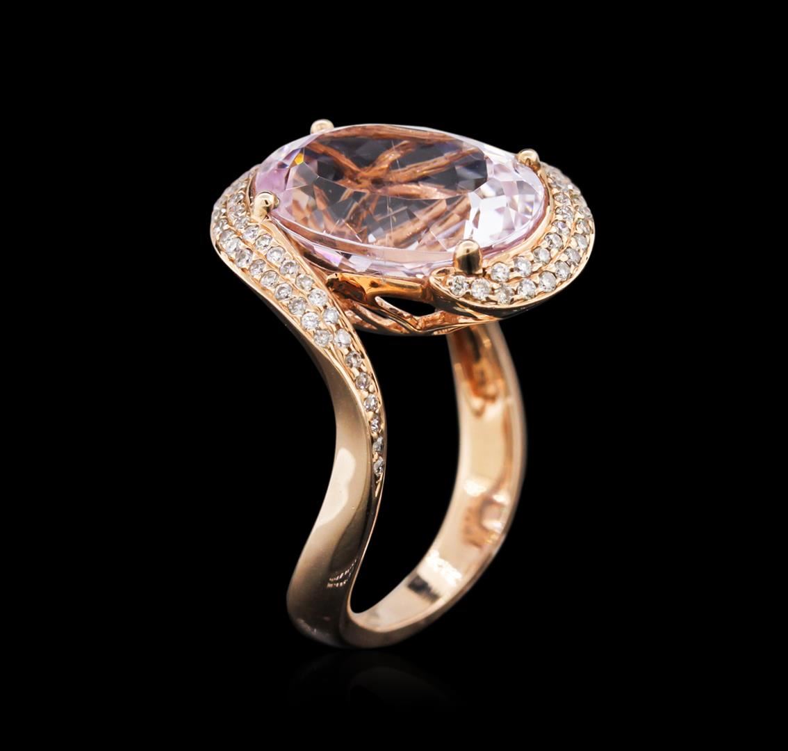 One ring featuring: 14KT rose gold weighing 5.13 grams containing one kunzite center stone with a total weight of 7.41ct and 82 round diamonds with a total weight of 0.33ct.