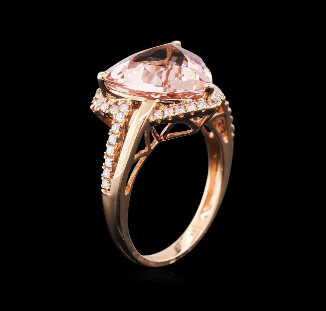 One ring featuring: 14KT rose gold weighing 3.58 grams containing one morganite center stone with a total weight of 7.68ct and 43 round diamonds with a total weight of 0.26ct.