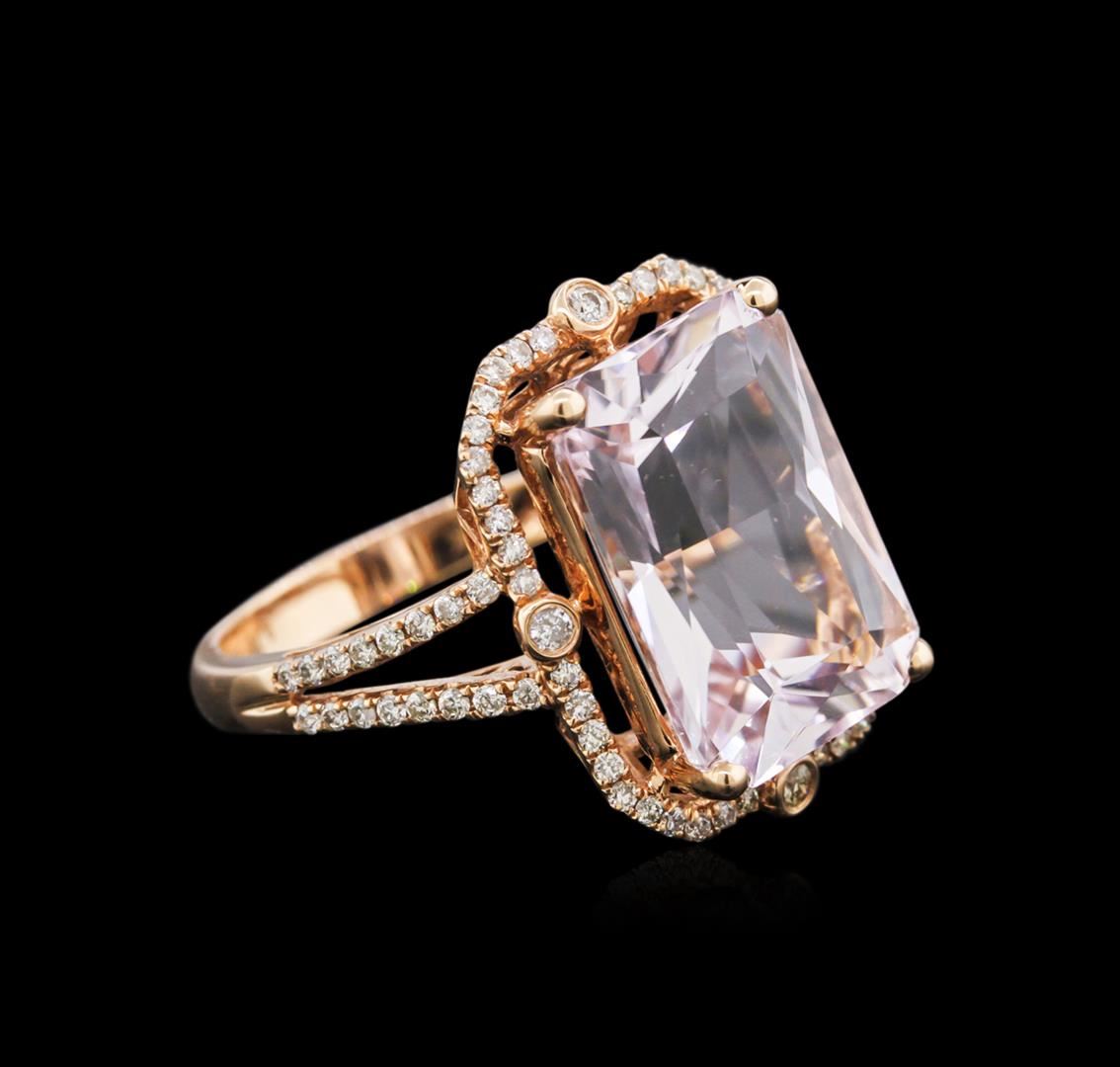 One ring featuring: 14KT rose gold weighing 4.33 grams containing one kunzite center stone with a total weight of 9.78ct and 76 round diamonds with a total weight of 0.48ct.