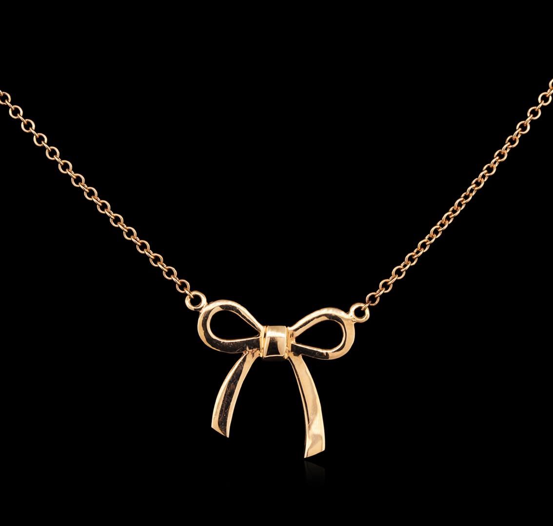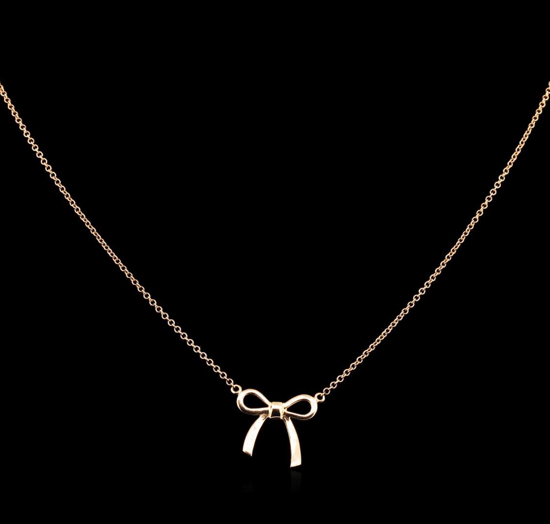 One bow necklace featuring: 14KT rose gold weighing 3.50 grams.