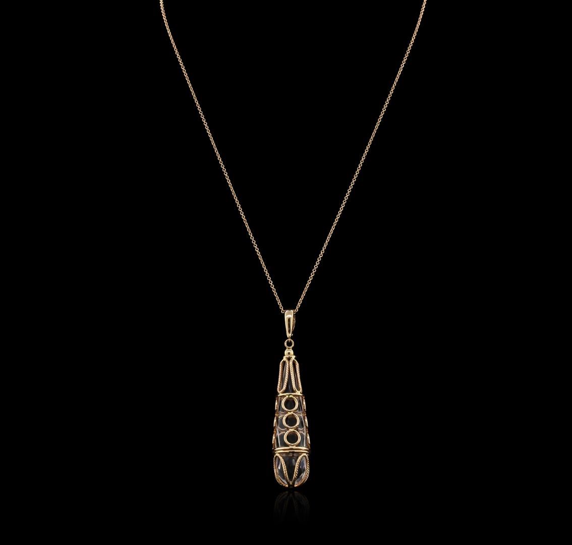 One chandelier crystal pendant with chain featuring: 14KT rose gold weighing 9.46 grams.