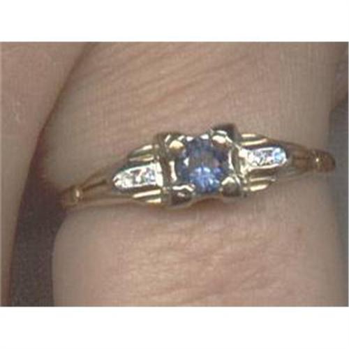 A really lovely engagement ring with a nice sized saphire center and two tiny diamonds on each side. I do not know how many carats the saphire or diamonds are. I did have the settings checked and tested and they are all tight and test 14KT. The stones test as diamond and saphire by the same jeweler who tested the gold. He thinks that it is possible that the saphire replaced another stone. The diamonds are set in white gold and the ring itself is yellow gold. It is in very good condition. It is a size 9 1/2. Shipping fees quoted are for priority/Insured in USA.