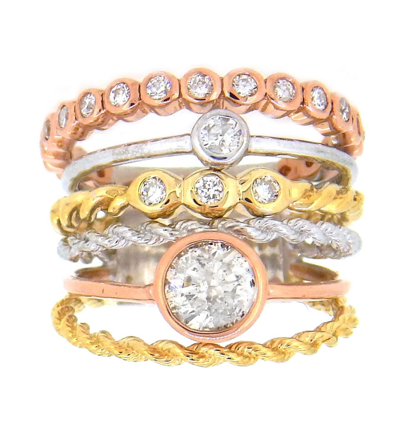 One 14KT Tri Color Gold 1.28ctw Diamond Ring. (24) Diamonds with a total weight of 1.28cts with a color of G-I and clarity of VS-2 to SI-3. Total weight of this ring is 9.1 grams.