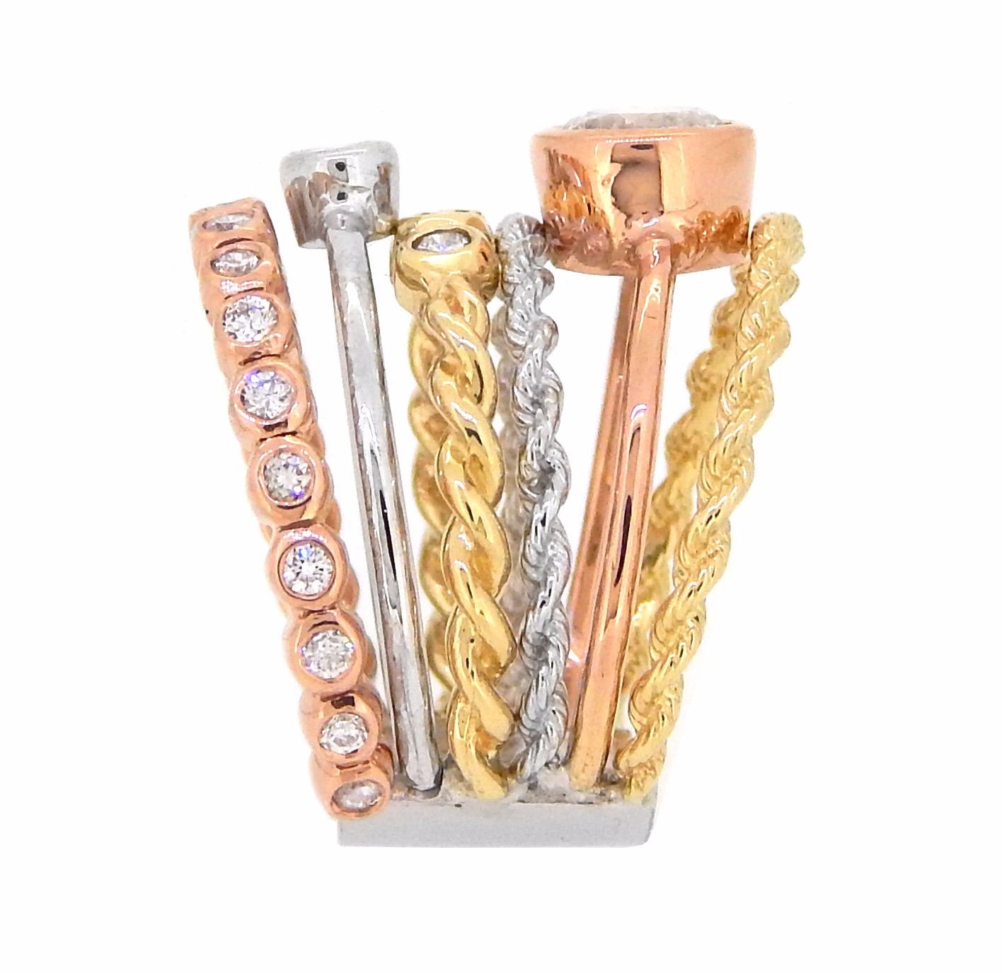 One 14KT Tri Color Gold 1.42ctw Diamond Ring. (24) Diamonds with a total weight of 1.42cts with a color of G-I and clarity of VS-2 to SI-3. Total weight of this ring is 9.4 grams.