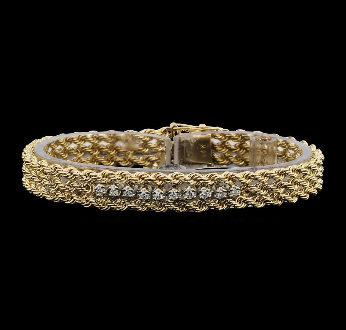 One Ladies bracelet featuring: 14KT yellow and white gold weighing 20.9 grams containing diamonds weighing 0.50ctw.