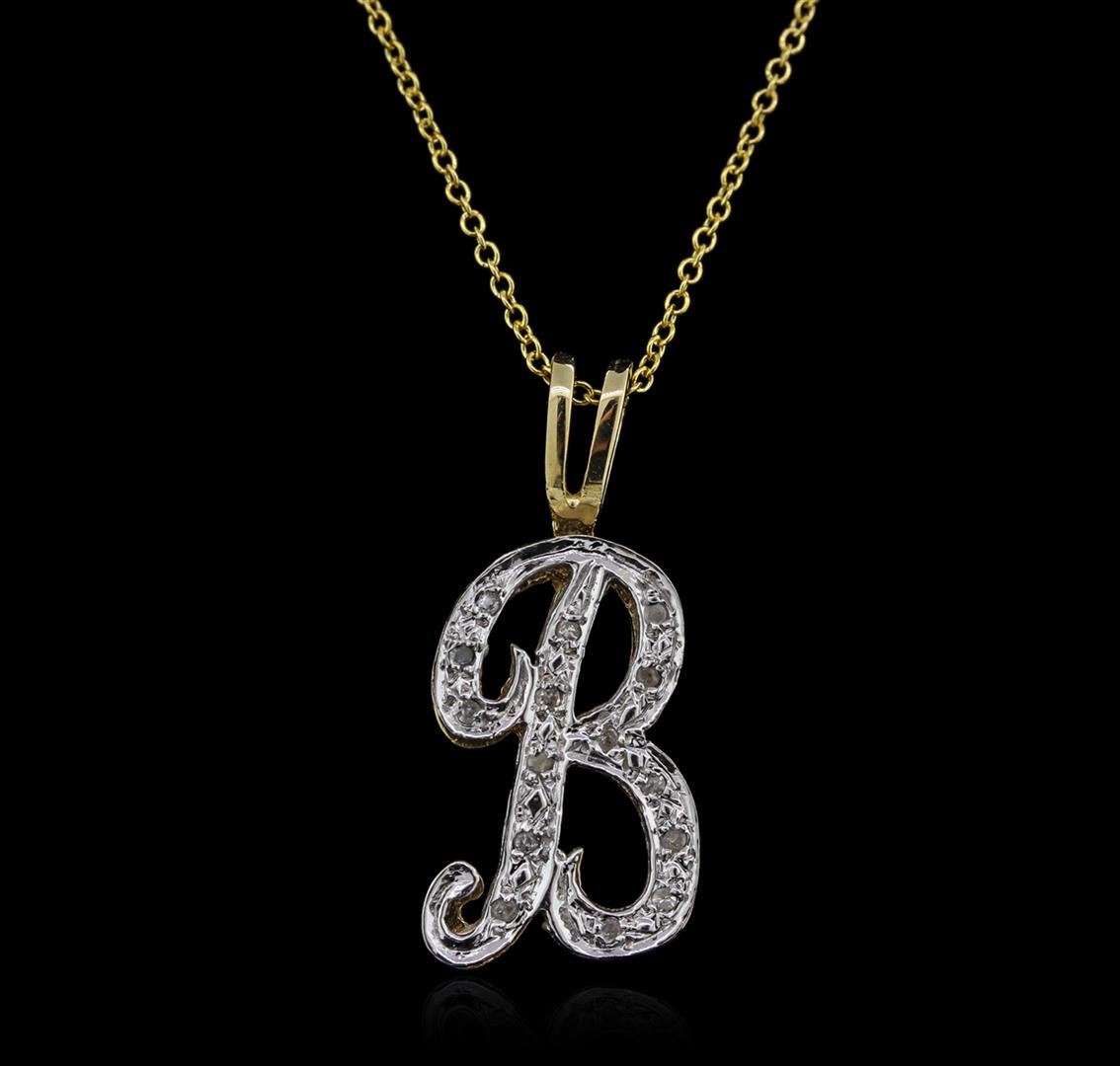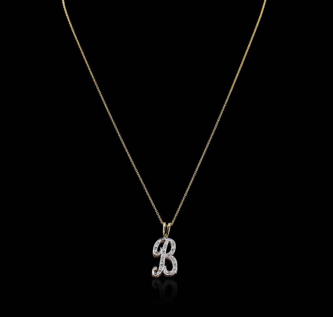 One pendant with chain resembling the letter B featuring: 14KT yellow and white gold weighing 2.60 grams containing diamonds with a total weight of 0.05ct.