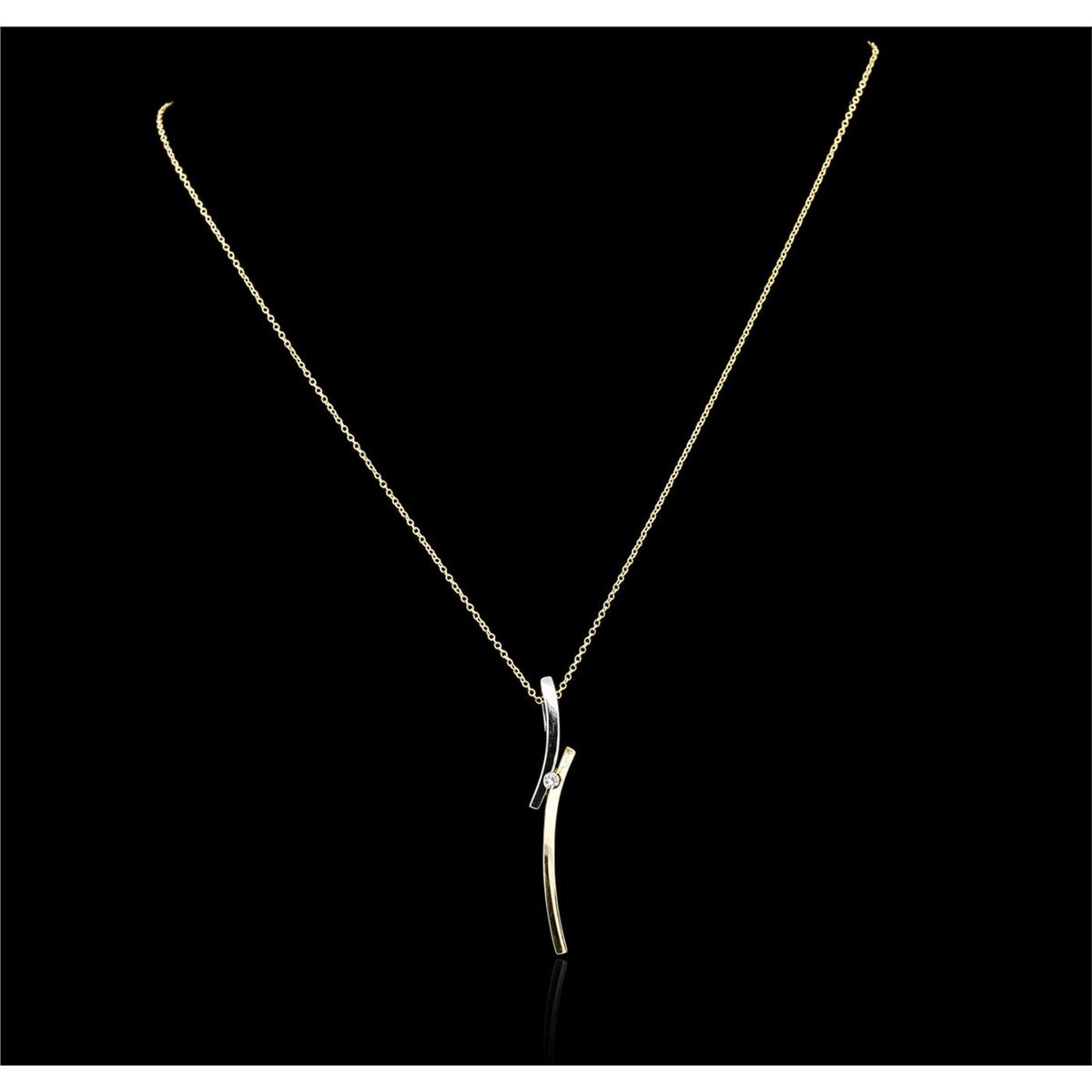 One pendant with chain featuring: 14KT yellow and white gold containing one round diamond with a total weight of 0.07ct.