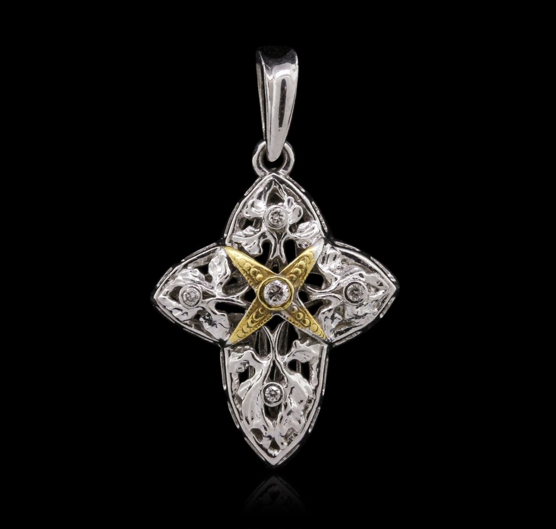 One pendant featuring: 14KT white and yellow gold weighing 5.60 grams containing five round diamonds with a total weight of 0.09ct.