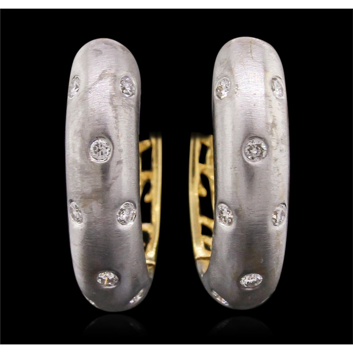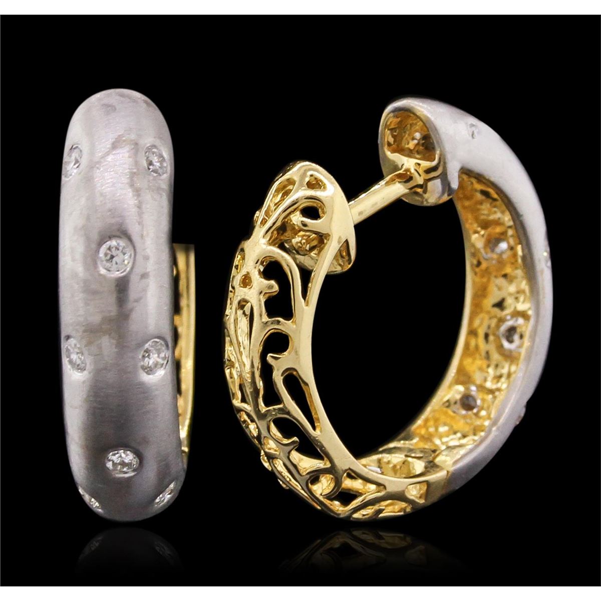 One pair of earrings featuring: 5.9 grams of 14KT two-tone gold, and diamonds with a total weight of 0.10ctw.