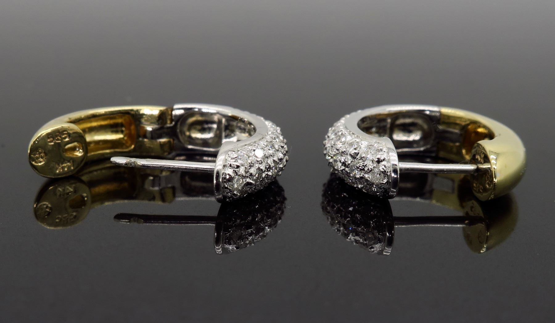 One 14KT Two Tone Gold 0.25ctw Diamond Earrings. (50) Round Diamonds with a total weight of 0.25cts with a color of G-I and clarity of SI-2. Total weight of these earrings are 4.5 grams.