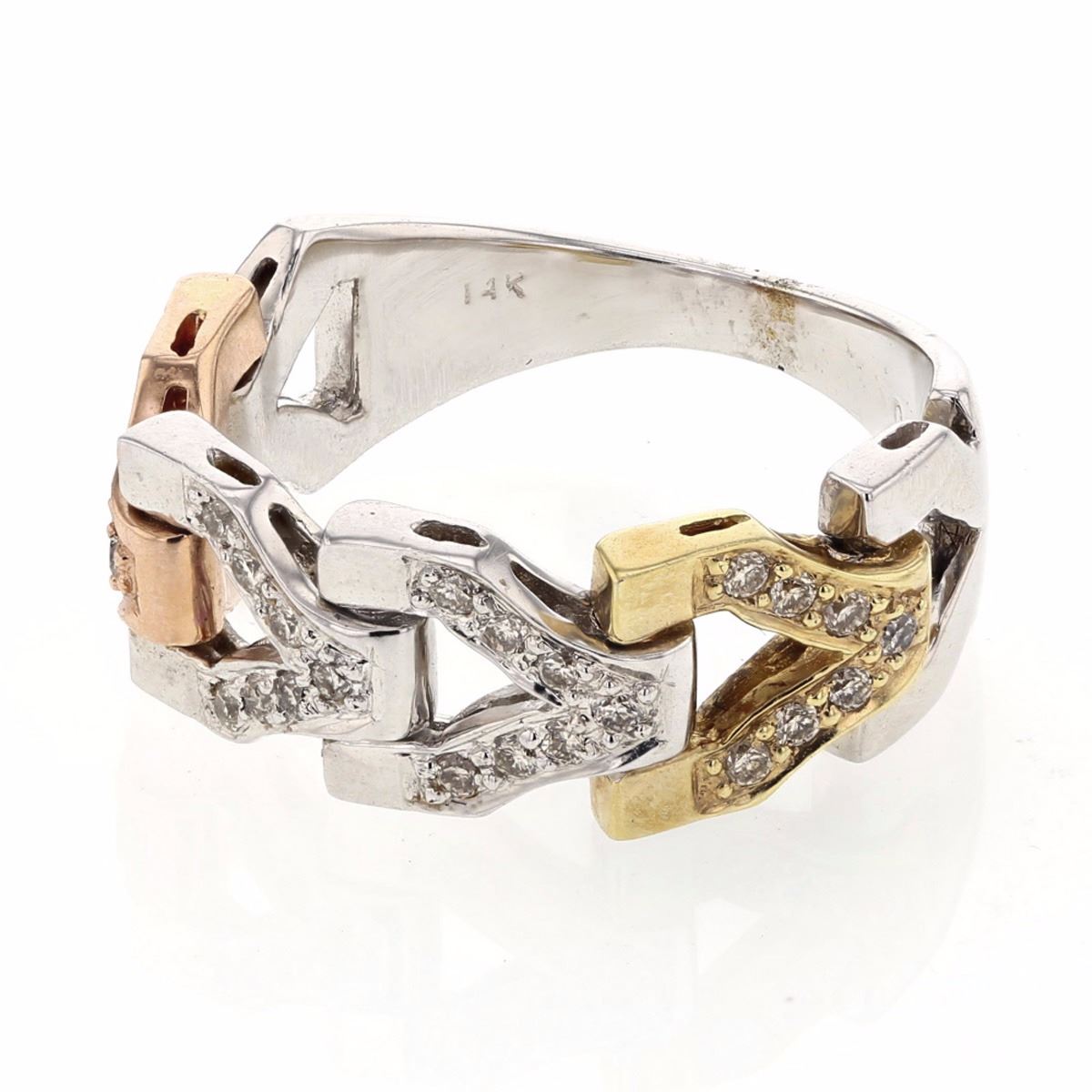 One 14KT Two Tone Gold 0.27ctw Diamond Ring. (28) Diamonds with a total weight of 0.27cts. The total weight of this ring is 5.32 grams.