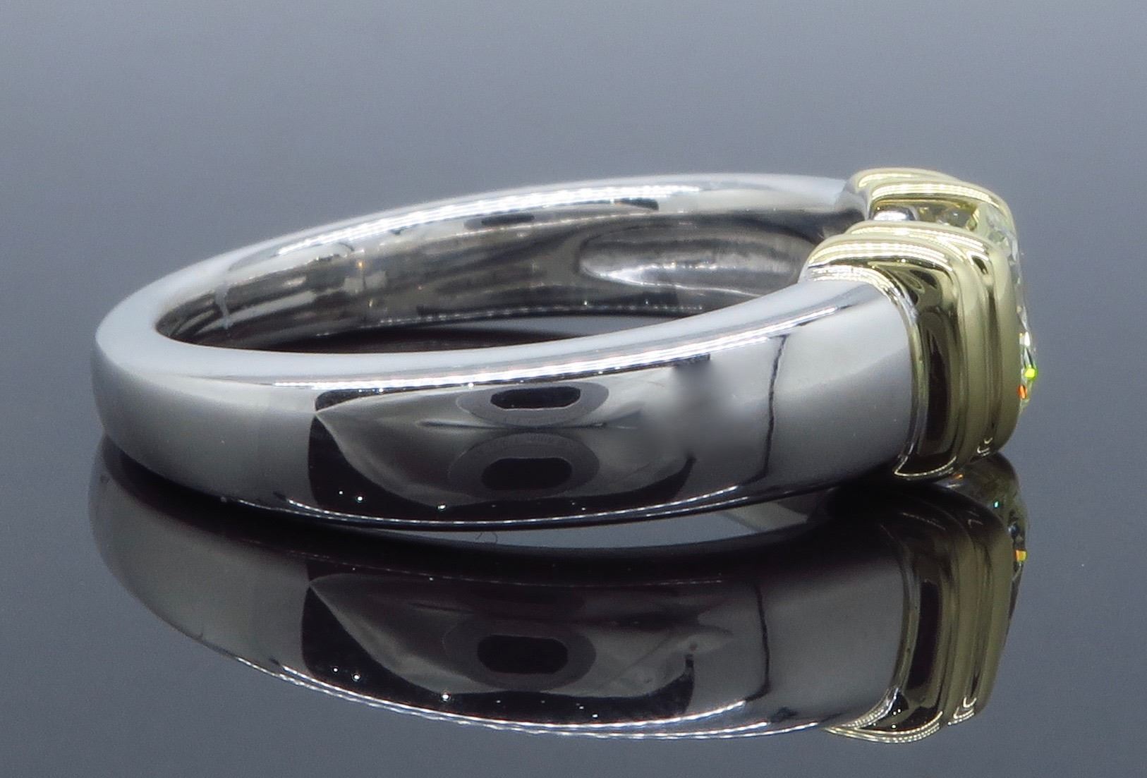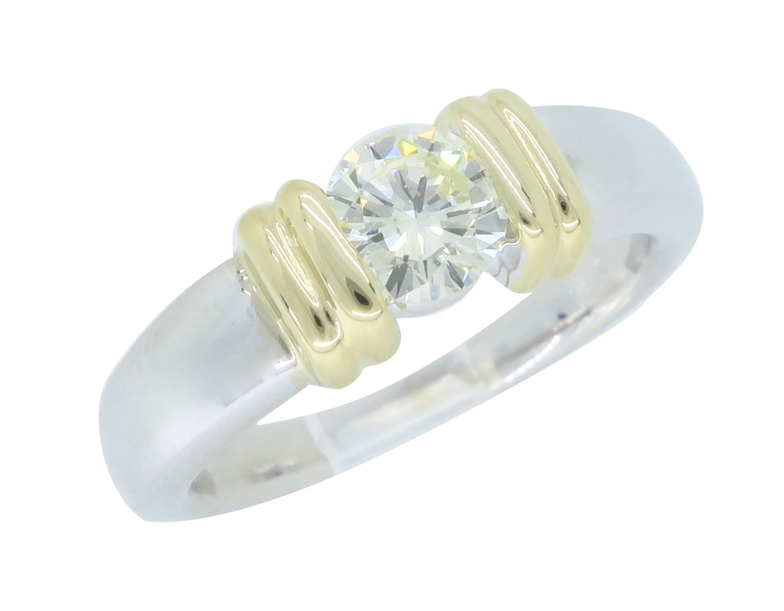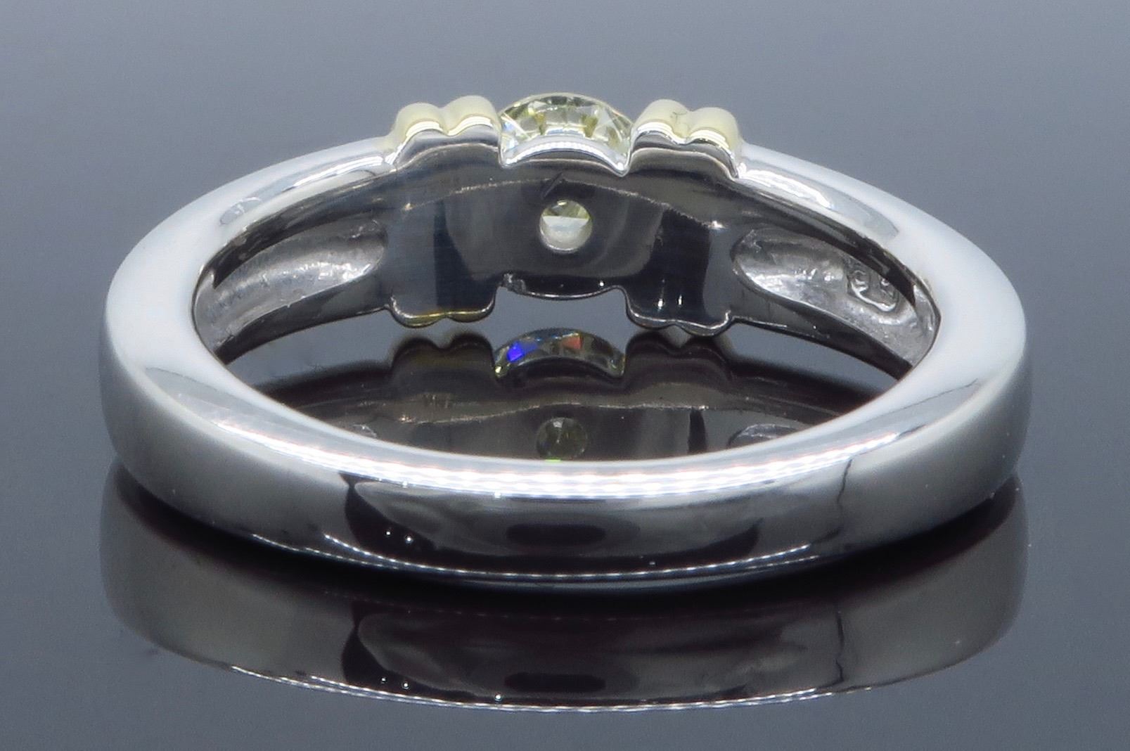 One 14KT Two Tone Gold 0.50ct Diamond Ring. (1) round Diamond with a total weight of 0.50cts with a color of Light yellow and clarity of SI-1. Total weight of this ring is 5.6 grams. Ring size is 6.