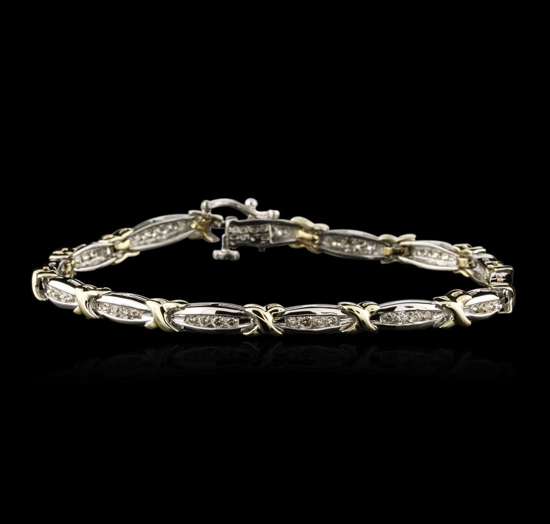 One bracelet featuring: 14KT white and yellow gold weighing 9.95 grams containing channel set round diamonds with a total weight of 0.50ct.