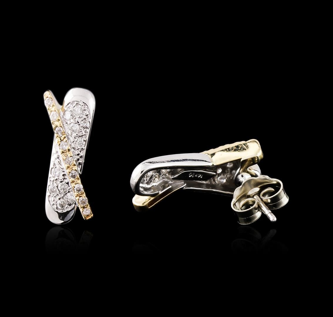One pair of earrings featuring: 14KT white and yellow gold weighing 3.20 grams containing diamonds with a total weight of 0.50ct.