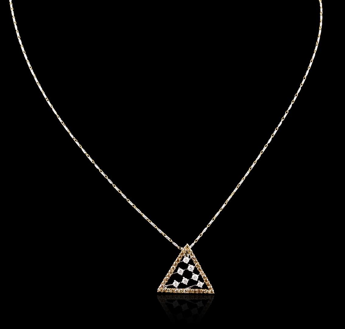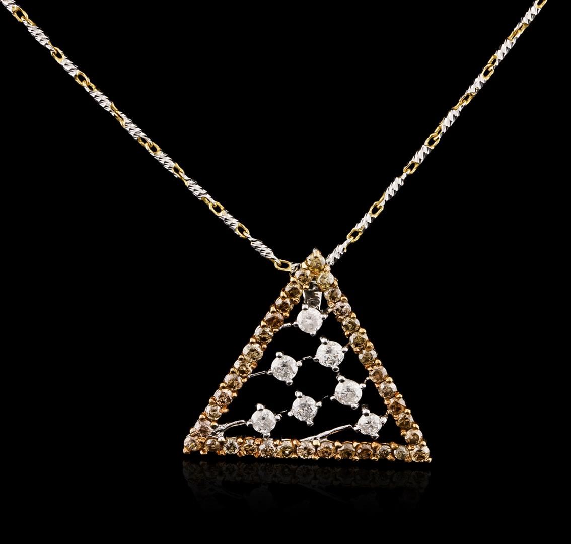 One pendant with chain featuring: 14KT two-tone gold weighing 5.40 grams containing brown and white diamonds with a total weight of 0.67ct.