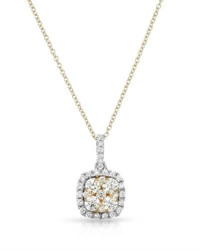 One 14KT Two Tone Gold 0.68ctw Diamond Pendant with Chain. (33) Diamonds with a total weight of 0.68cts with a color of I and clarity of I-1.