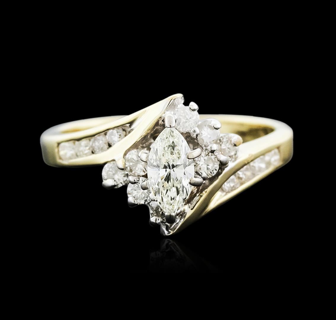One ring featuring: 14KT yellow and white gold weighing 3.64 grams containing one marquise cut diamond center weighing 0.35ct and round cut diamonds weighing a total of 0.40ct.