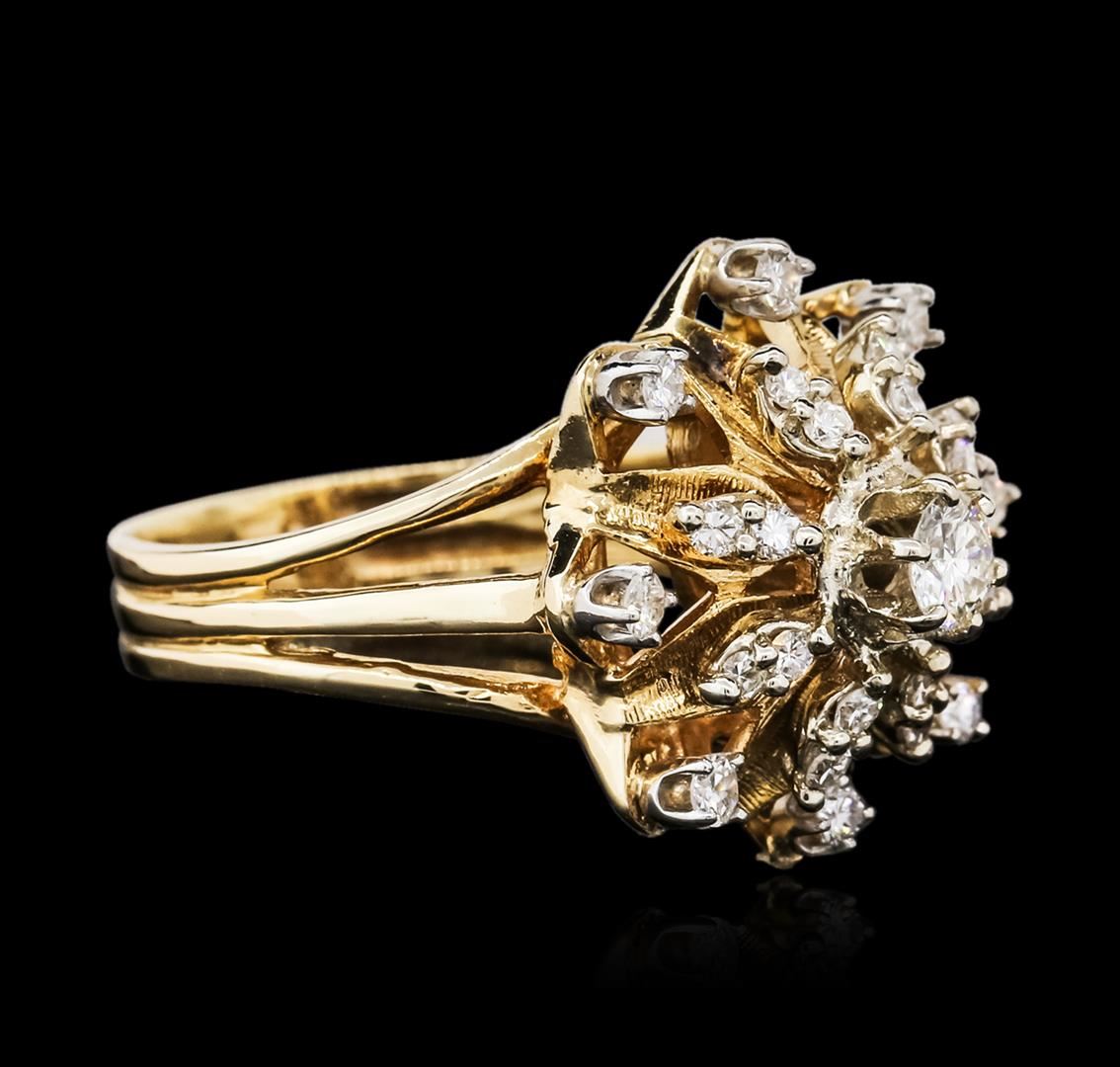 One ring featuring: 14KT yellow and white gold weighing 9.10 grams containing one round diamond center stone with a total weight of 0.27ct and round diamond side stones with a total weight of 0.50cts.
