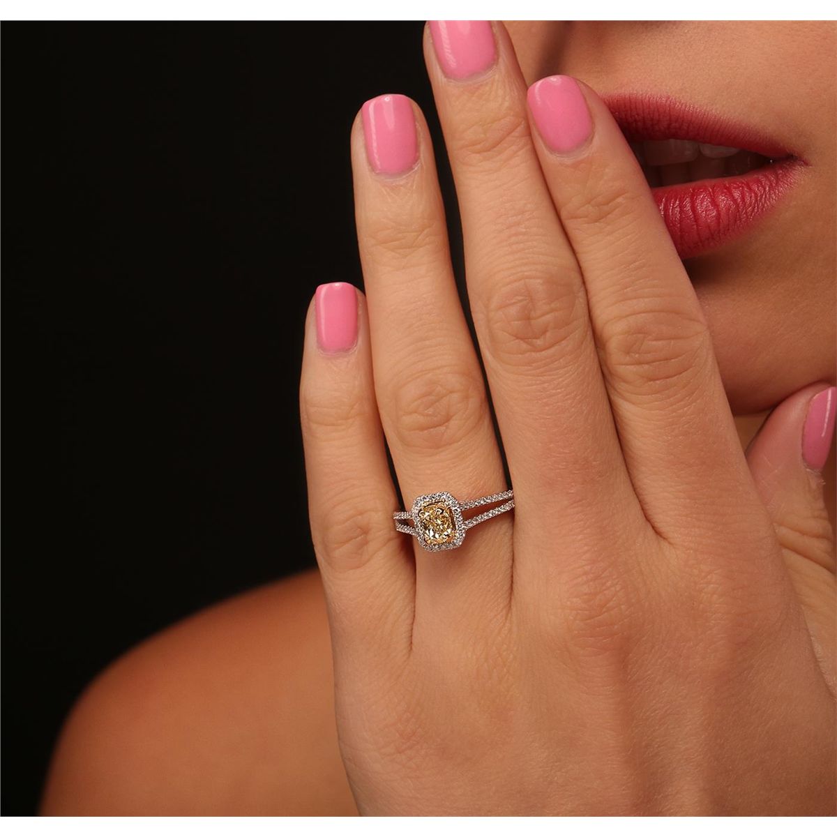 One electronically tested 14KT white and yellow gold Ladies combination cast & assembled engagement ring with a bright polish finish. Condition is new. Identified with markings of "14K". Containing: One prong set oval shaped cut diamond, measuring 5.90 x 4.95 x 4.00mm (depth est.) approximate weight of 0.73ct. Clarity: VS-2, Cut is Good. Sixty bead set round brilliant cut diamonds, measuring 1.10 - 1.10 x 0.66mm (depth est.) approximate. Total Weight of 60 Stones = 0.29ct. Clarity: I-1 to I-2. Color: H - I, Cut is Good. Total Weight of Diamonds 1.02ct. Total Weight of Ring 4.30 grams. GGL Appraised at $13,050.00.