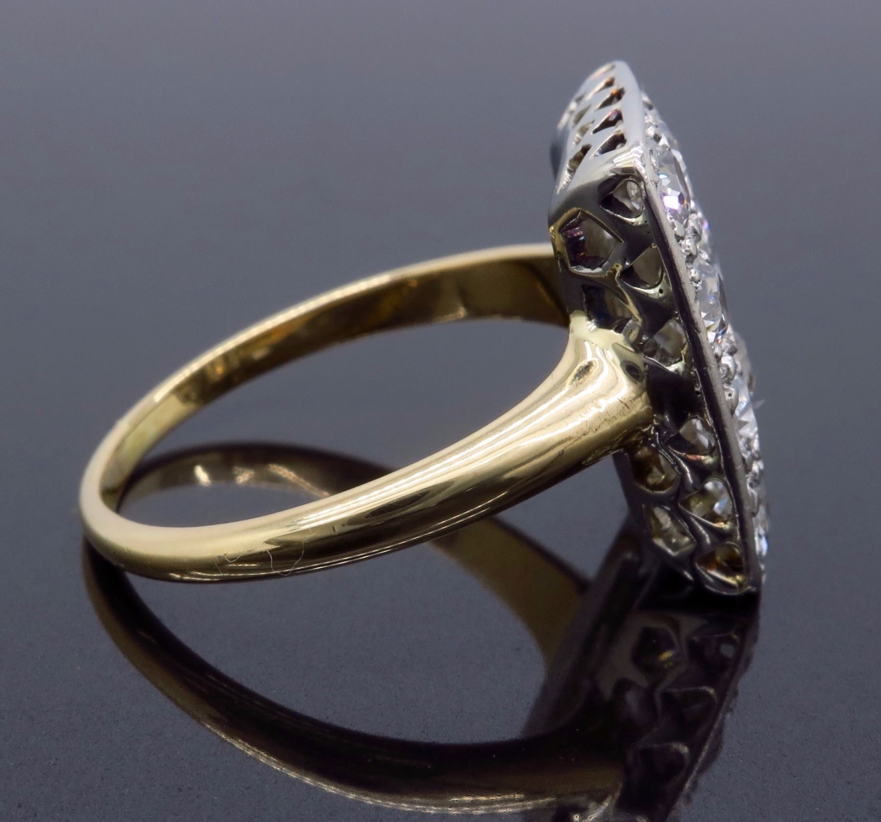 One 14KT Two Tone Gold 1.08ctw Diamond Ring. Old miners cut Diamonds with a total weight of 1.08cts with a color of G-I and clarity of VS-2 to I-1. Ring shows wear consistent with age and use. Total weight of this ring is 4.0 grams.