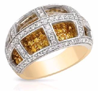 One 14KT Two Tone Gold 1.31ctw Yellow Sapphire and Diamond Ring. (71) Yellow Sapphires with a total weight of 1.31cts. (95) Diamonds with a total weight of 0.97cts with a color of H and clarity of SI-1 to SI-2. Total weight of this ring is 10.43 grams.