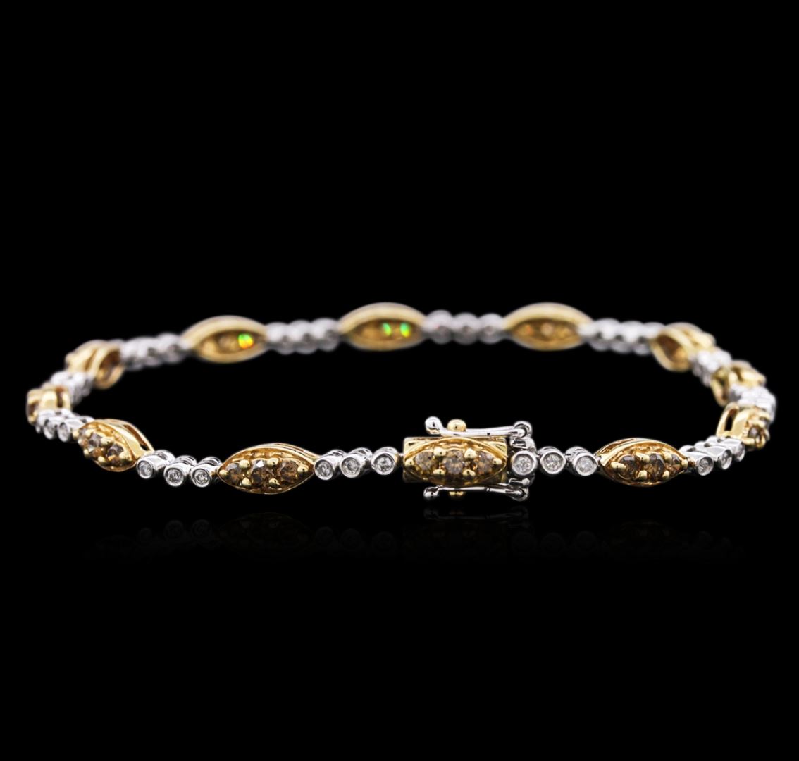 One bracelet featuring: 14KT white and yellow gold weighing 8.57 grams containing 36 brown diamonds with a total weight of 1.29ct and 36 round diamonds with a total weight of 0.27ct.