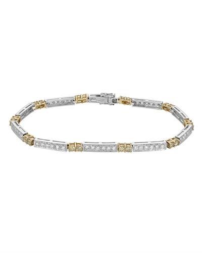 14KT Two Tone Gold 1.97ctw Yellow Diamond Bracelet. (20) Round Yellow Diamonds with a total weight of 1.11cts with a clarity of SI-2. (59) Round white Diamonds with a total weight of 0.86cts with a color of I and clarity of I-1. Total length of this bracelet is 7 inches. Total weight of this bracelet is 8.69 grams.