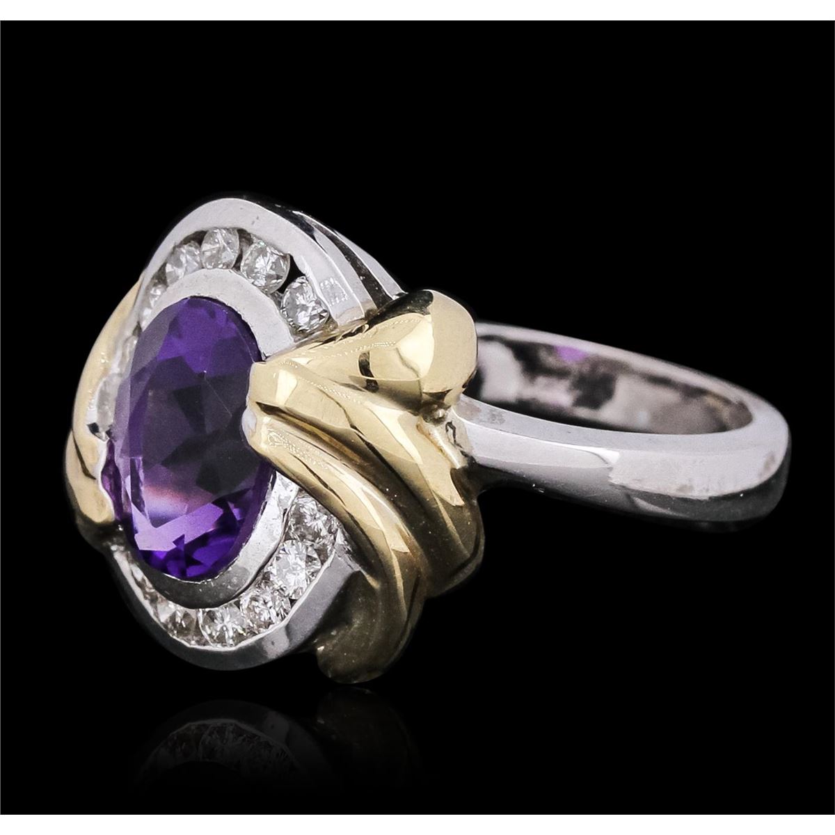 One ring featuring: 14KT two-tone gold with a total weight of 8.48 grams, amethyst with a total weight of 2.00ct, and diamonds with a total weight of 0.30ctw.