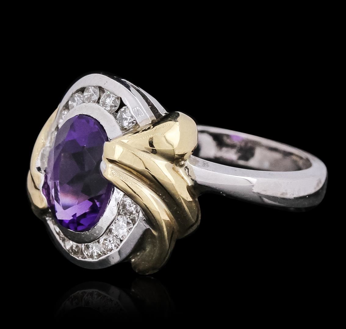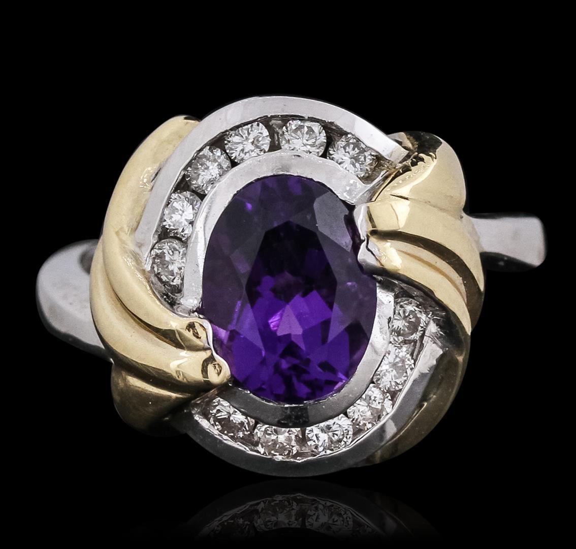 One ring featuring: 14KT two-tone gold with a total weight of 8.48 grams, amethyst with a total weight of 2.00ct, and diamonds with a total weight of 0.30ctw.