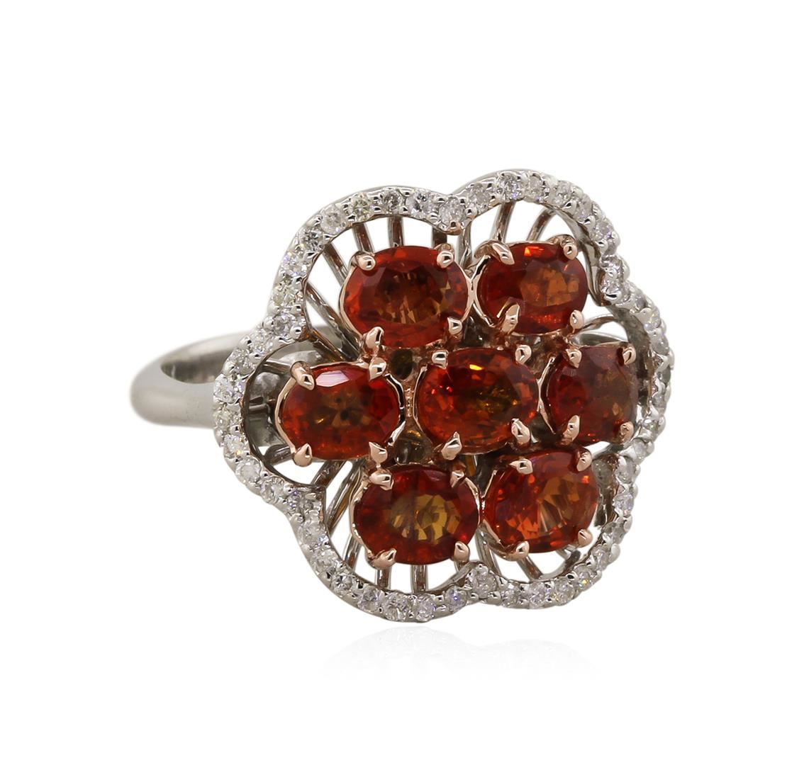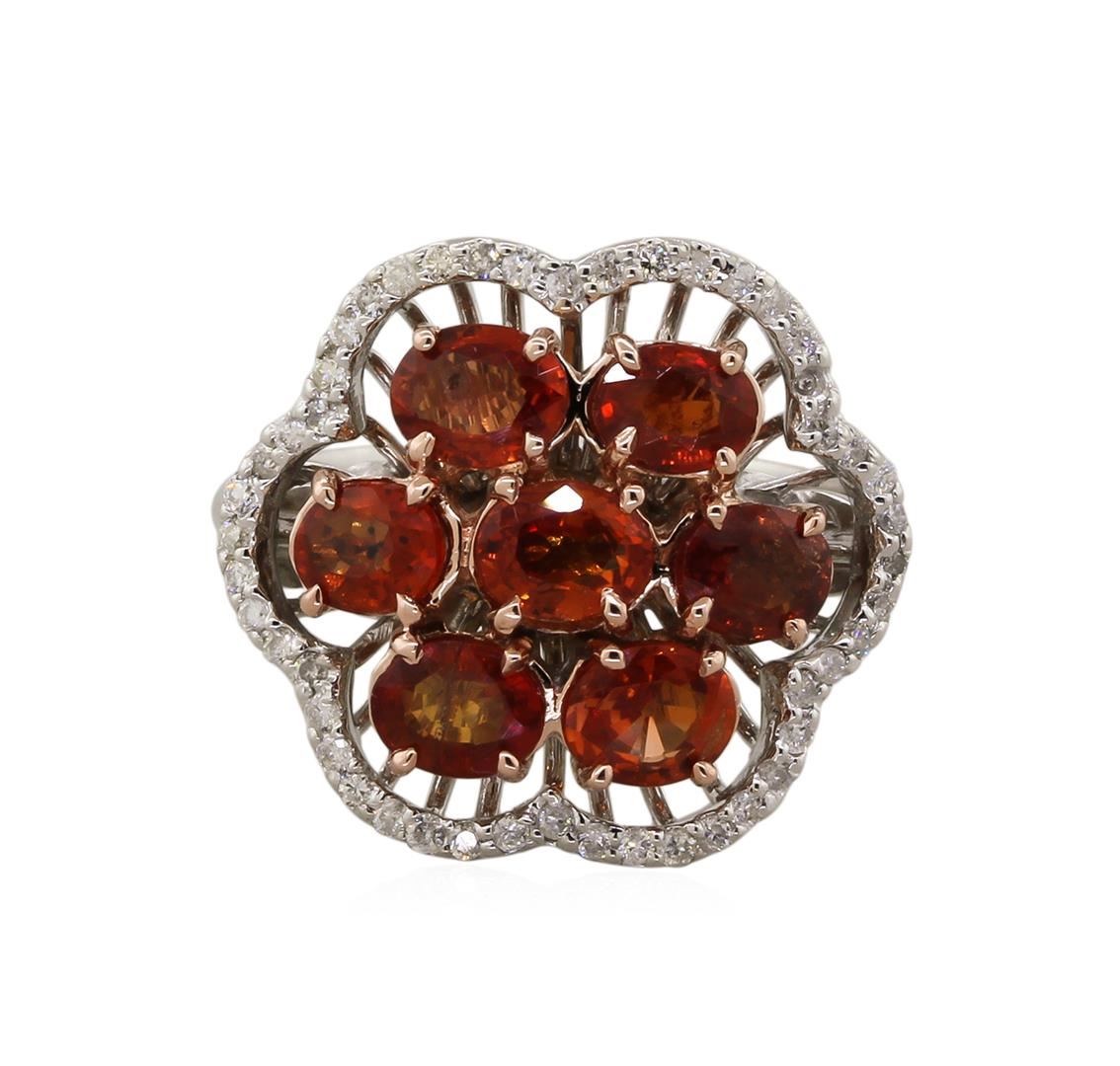 One ring featuring: 14KT white and yellow gold weighing 5.66 grams containing 7 sapphires with a total weight of 3.10ct and diamonds with a total weight of 0.28ct.