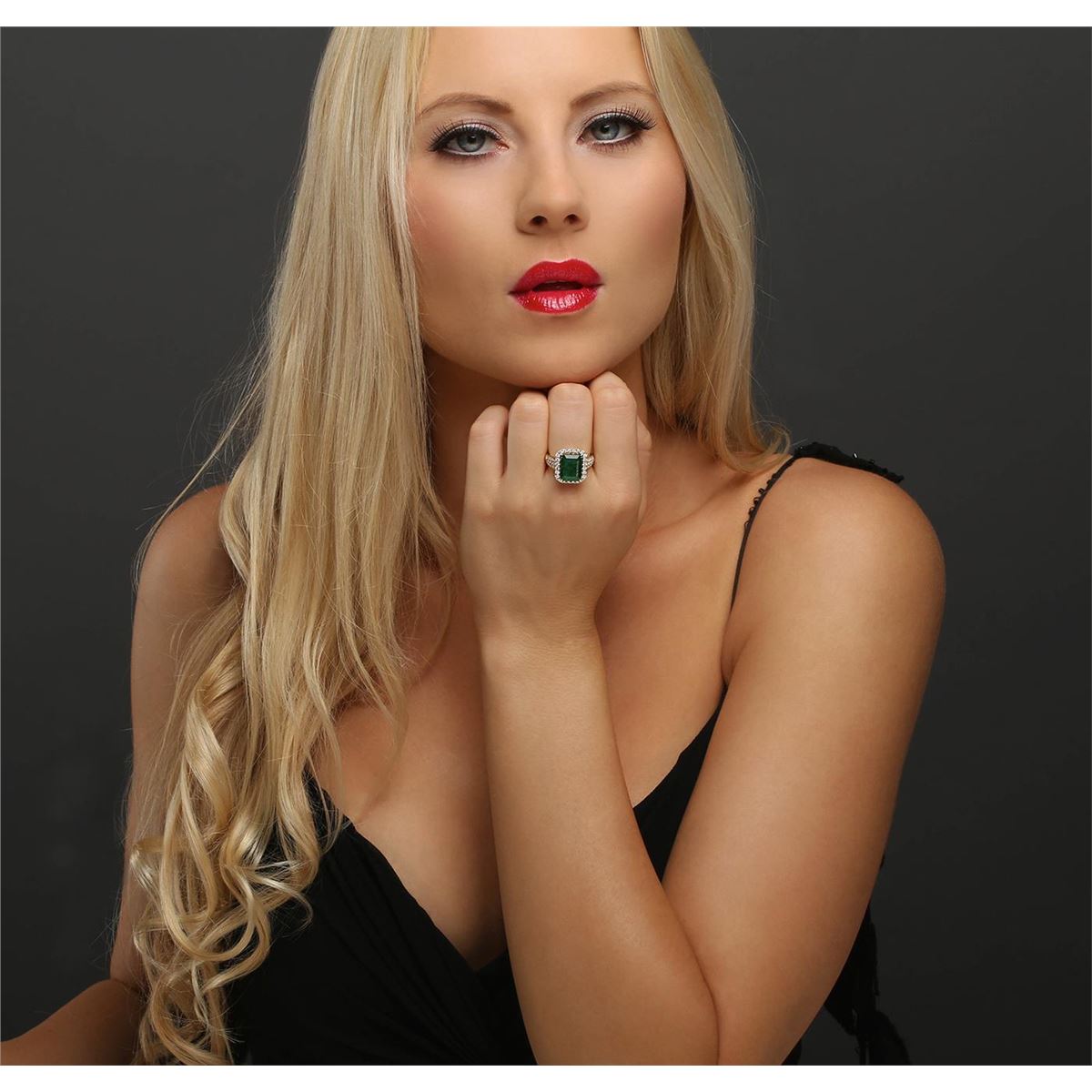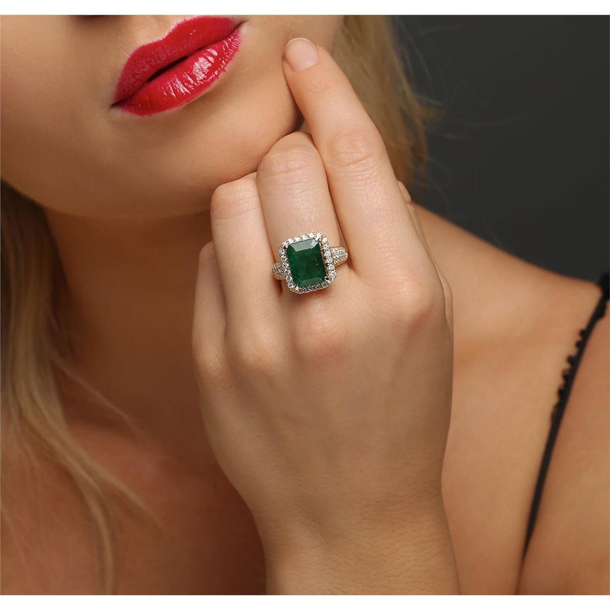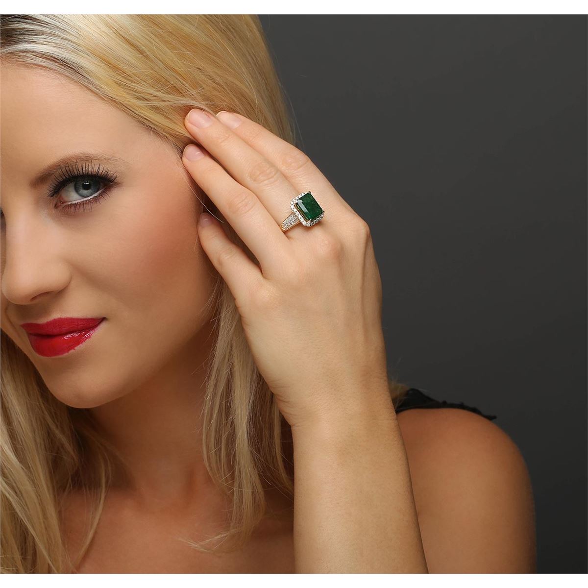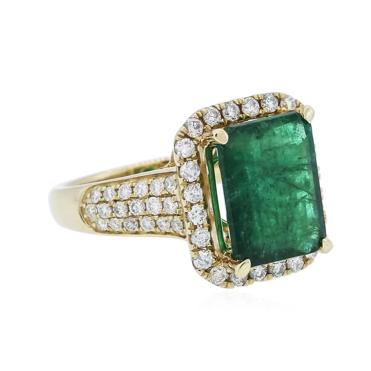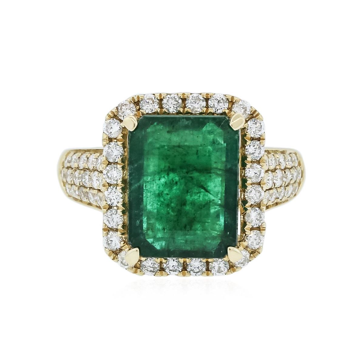 One electronically tested 14KT white and yellow gold ladies combination cast & assembled emerald and diamond ring with a flat shank with a bright polish finish. Identified with markings of "14K". Condition is new. Containing: One prong set emerald modified brilliant cut natural emerald, measuring 12.00 x 9.28 x 4.60mm, approximate weight of 3.76ct., clarity is heavily included, type III, medium, moderately strong, green color, (GIA G 5/4), cut is good. Sixty prong set round brilliant cut diamonds, measuring 1.50 - 1.30 x 0.84mm (depth est.) stated total weight of 60 Stones = 0.60ct. Clarity: I-1 to I-2. Color: J - K, Cut is Good. Colored gemstones are presumed to have been subjected to commonly used enhancement processes. All diamonds and colored gemstones are graded in the mounting, unless otherwise stated total weight of Colored Stones 3.76ct. Total Weight of Diamonds 0.60ct. Total Weight of Ring 6.30 grams. GGL Appraised at $10,755.00.