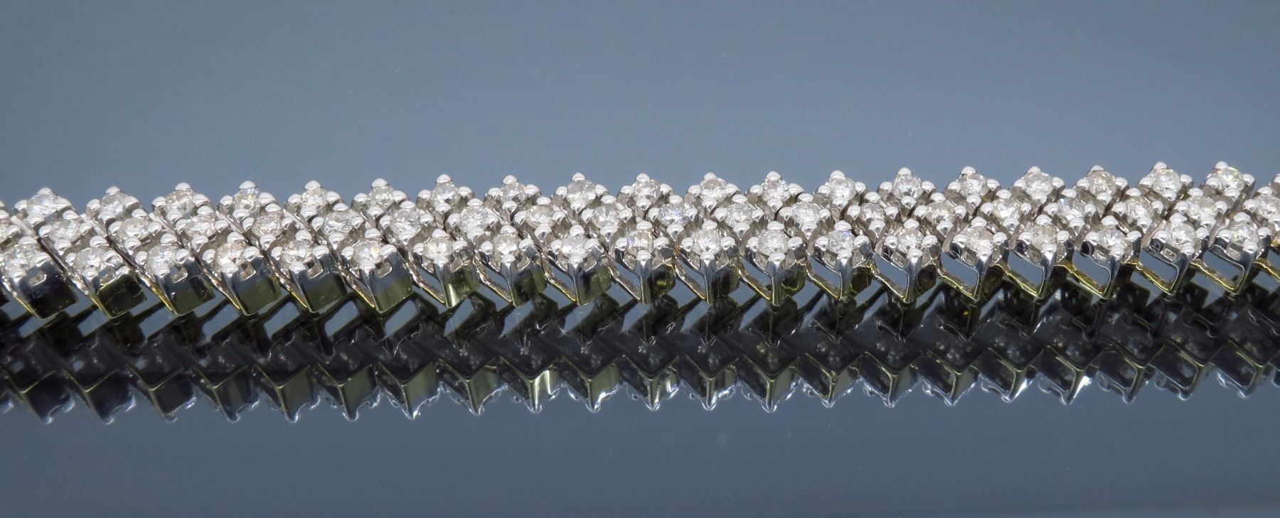 One 14KT Two Tone Gold 3.80ctw Diamond Bracelet. Round Diamonds with a total weight of 3.80cts with a color of H-J and clarity of SI-1 to I-1. Total length of this bracelet is 7.25 inches. Total weight of this bracelet is 20.5 grams.