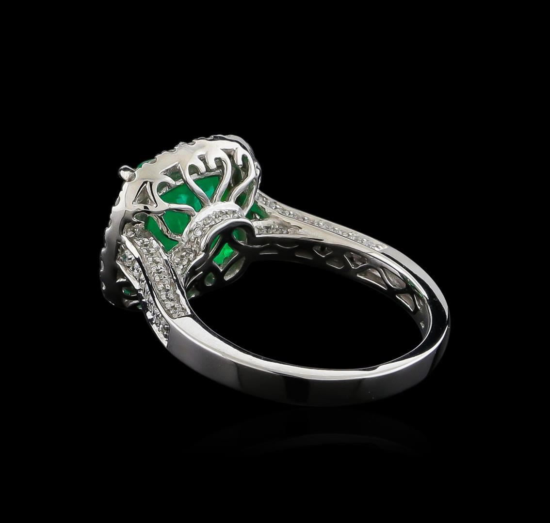 One electronically tested 14KT white and yellow gold ladies combination cast & assembled emerald and diamond ring with a split shoulder shank with a bright polish finish. Identified with markings of "14K". Condition is new. Containing: One prong set emerald standard step cut natural emerald, measuring 9.51 x 9.21 x 5.99mm, approximate weight of 3.85ct., clarity is heavily included, type III, medium light, moderately strong, green color, (GIA G 4/4), cut is good. Ninety-Four prong set round brilliant cut diamonds, measuring 1.40 - 1.20 x 0.78mm (depth est.) approximate total weight of 94 Stones = 0.75ct. . Clarity: I-1 to I-2. Color: H - I, Cut is Good. Colored gemstones are presumed to have been subjected to commonly used enhancement processes. All diamonds and colored gemstones are graded in the mounting, unless otherwise stated.. Total Weight of Colored Stones 3.85ct.. Total Weight of Diamonds 0.75ct.. Total Weight of Ring 6.20 grams. GGL Appraised at $11,470.00.