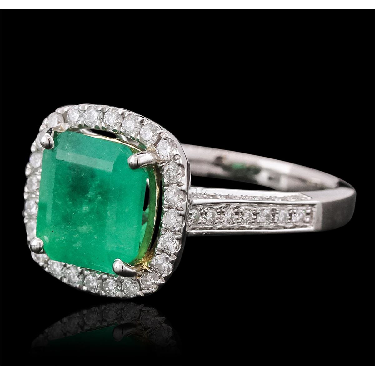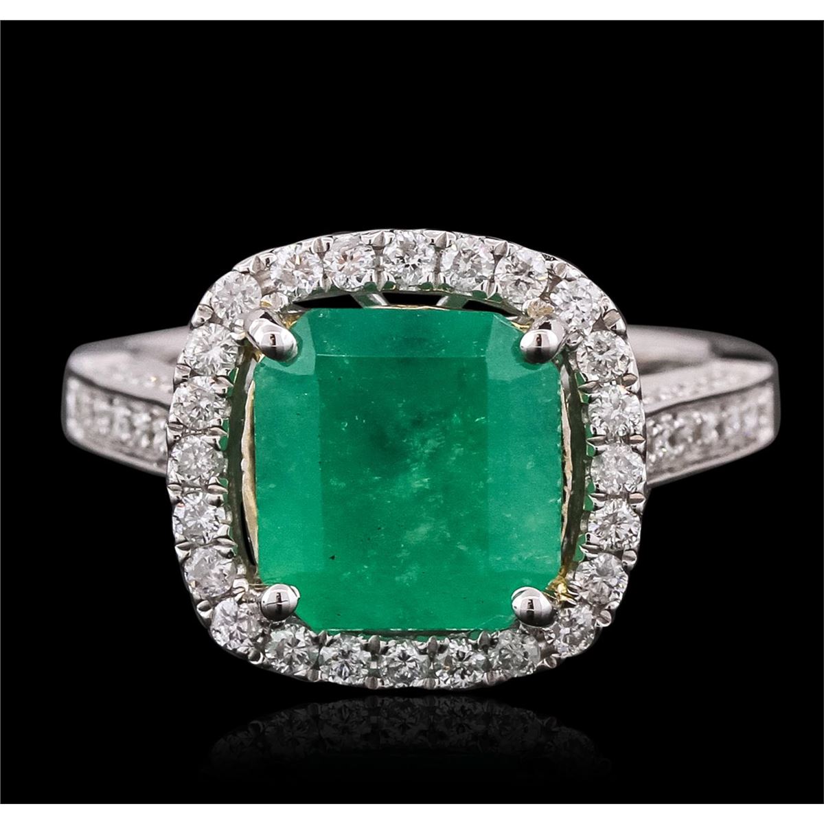 One electronically tested 14KT white and yellow gold ladies combination cast & assembled emerald and diamond ring with a split shoulder shank with a bright polish finish. Identified with markings of "14K". Condition is new. Containing: One prong set emerald standard step cut natural emerald, measuring 9.51 x 9.21 x 5.99mm, approximate weight of 3.85ct., clarity is heavily included, type III, medium light, moderately strong, green color, (GIA G 4/4), cut is good. Ninety-Four prong set round brilliant cut diamonds, measuring 1.40 - 1.20 x 0.78mm (depth est.) approximate total weight of 94 Stones = 0.75ct. . Clarity: I-1 to I-2. Color: H - I, Cut is Good. Colored gemstones are presumed to have been subjected to commonly used enhancement processes. All diamonds and colored gemstones are graded in the mounting, unless otherwise stated.. Total Weight of Colored Stones 3.85ct.. Total Weight of Diamonds 0.75ct.. Total Weight of Ring 6.20 grams. GGL Appraised at $11,470.00.