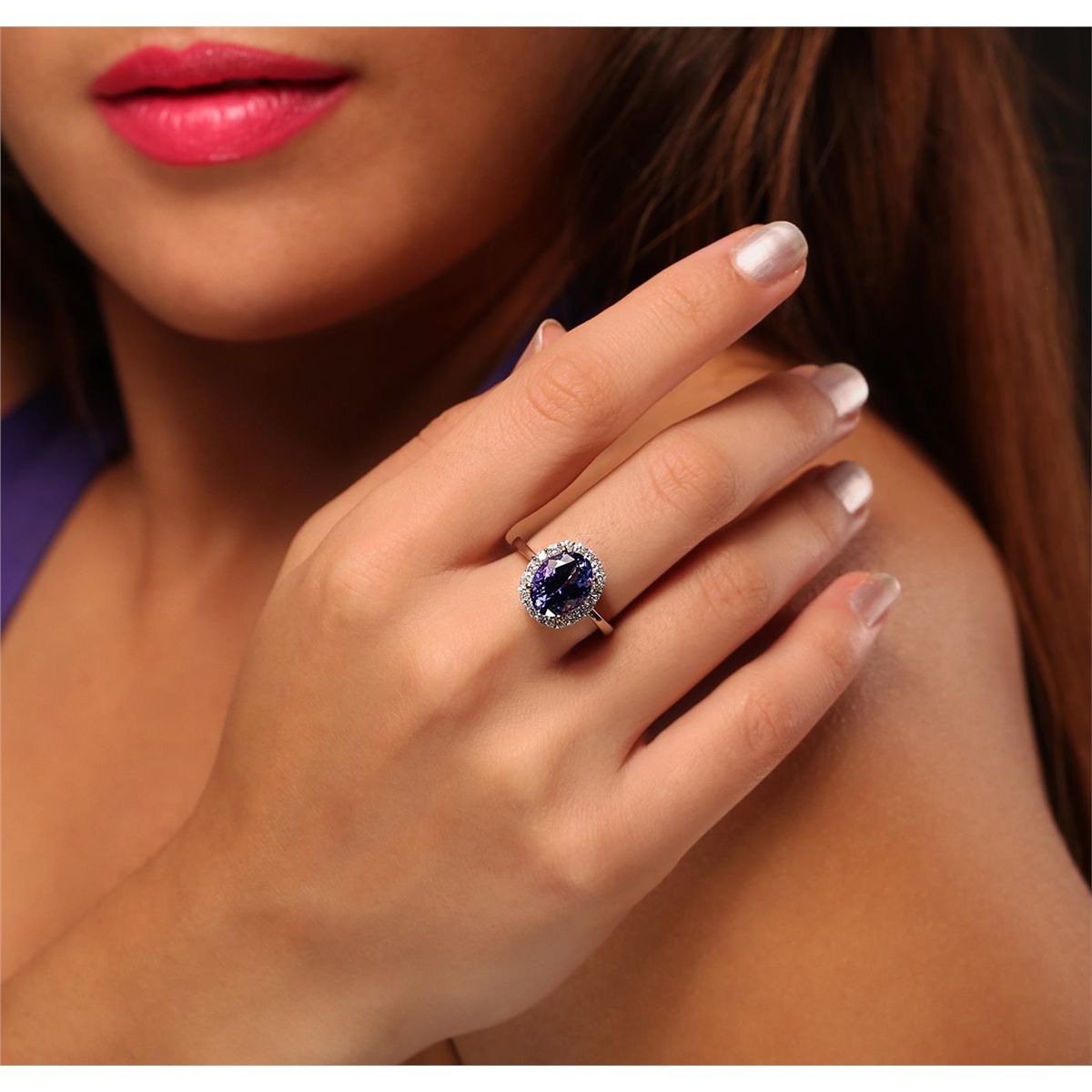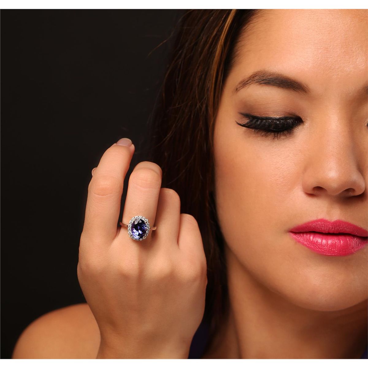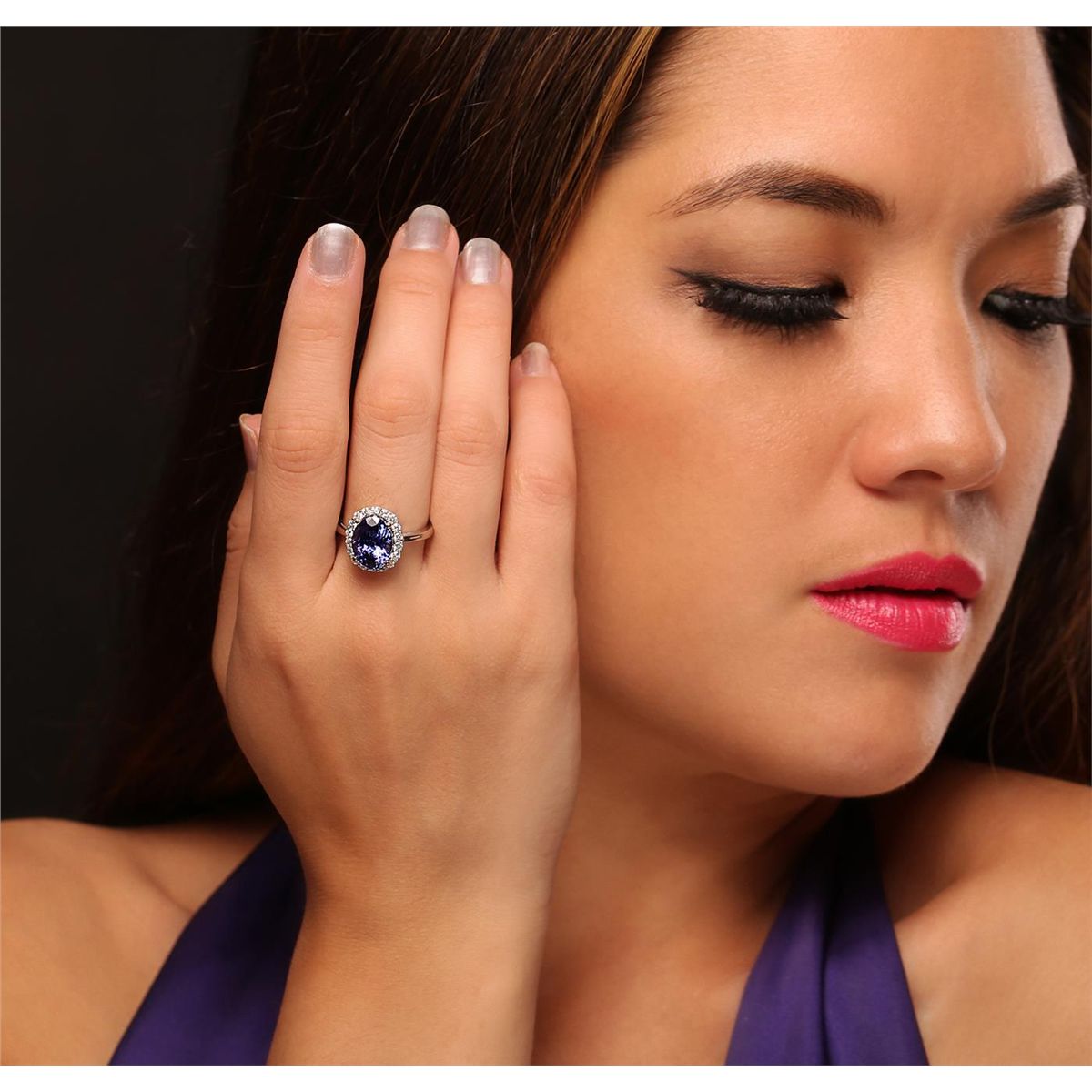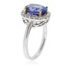 One electronically tested 14KT white and yellow gold Ladies combination cast & assembled ring with a bright polish finish. Condition is new. Identified with markings of "14K". Containing: Eighteen prong set round brilliant cut diamonds, measuring 1.70 - 1.70 x 1.02mm (depth est.) approximate. Total Weight of 18 Stones = 0.53ct. Clarity: I-1 to I-2. Color: I - J, Cut is Good. One prong set oval modified brilliant cut natural tanzanite, measuring 12.00 x 8.00 x 5.20mm, approximate weight of 3.90ct., clarity is eye clean, type I, medium dark, moderately strong, bluish violet color, (GIA bV 6/4), cut is very good. Colored gemstones are presumed to have been subjected to commonly used color/clarity enhancement processes. Total Weight of Colored Stones 3.90ct. Total Weight of Diamonds 0.53ct. Total Weight of Ring 4.30 grams. GGL Appraised at $7,815.00.