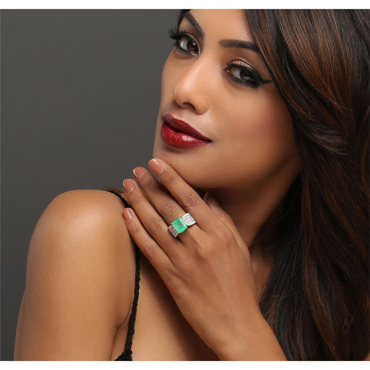 One electronically tested 14KT white and yellow gold ladies combination cast & assembled emerald and diamond ring with a tapered shank with a bright polish finish. Identified with markings of "14K". Condition is new. Containing: One prong set rectangular cushion modified brilliant cut natural emerald, measuring 10.66 x 9.33 x 6.55mm, approximate weight of 4.16ct., clarity is heavily included, type III, medium light, very slightly grayish, very slightly bluish green color, (GIA vslbG 4/3), cut is good. Thirty prong set round brilliant cut diamonds, measuring 2.00 - 2.00 x 1.20mm (depth est.) approximate total weight of 30 Stones = 0.88ct. Clarity: SI-1 to SI-2. Color: I - J, Cut is Good. Twenty-Eight prong set round brilliant cut diamonds, measuring 1.30 - 1.30 x 0.78mm (depth est.) approximate total weight of 28 Stones = 0.22ct. Clarity: SI-2 to I-1. Color: I - J, Cut is Good. Colored gemstones are presumed to have been subjected to commonly used enhancement processes. All diamonds and colored gemstones are graded in the mounting, unless otherwise stated. Total Weight of Colored Stones 4.16ct. Total Weight of Diamonds 1.10ct. Total Weight of Ring 10.80 grams. GGL Appraised at $14,210.00.