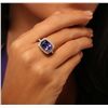 One electronically tested 14KT white and yellow gold Ladies combination cast & assembled ring with a bright polish finish. Condition is new. Identified with markings of "14K". Containing: One prong set rectangular cushion modified mixed cut natural tanzanite, measuring 11.12 x 7.83 x 5.80mm, approximate weight of 4.41ct., clarity is eye clean, type I, medium light, moderately strong, bluish violet color, (GIA bV 4/4), cut is very good. Colored gemstones are presumed to have been subjected to commonly used color/clarity enhancement processes. Forty prong set round brilliant cut diamonds, measuring 1.50 - 1.50 x 0.90mm (depth est.) approximate. Total Weight of 40 Stones = 0.61ct. Clarity: I-1 to I-2. Color: H - I, Cut is Good. Total Weight of Colored Stones 4.41ct. Total Weight of Diamonds 0.61ct. Total Weight of Ring 5.60 grams. GGL Appraised at $8,855.00.