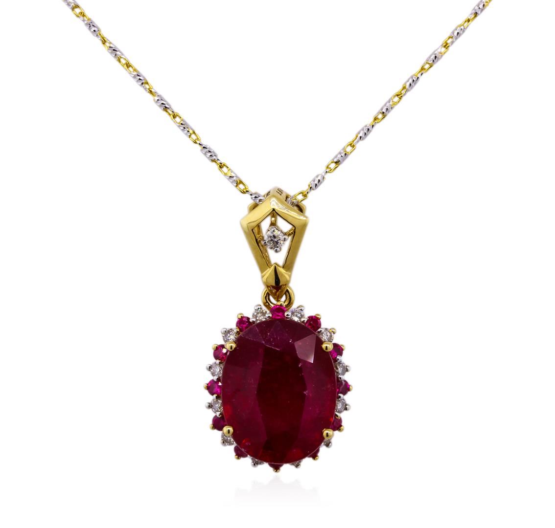 14KT Two-Tone Gold 6.10ctw Ruby and Diamond Pendant With Chain